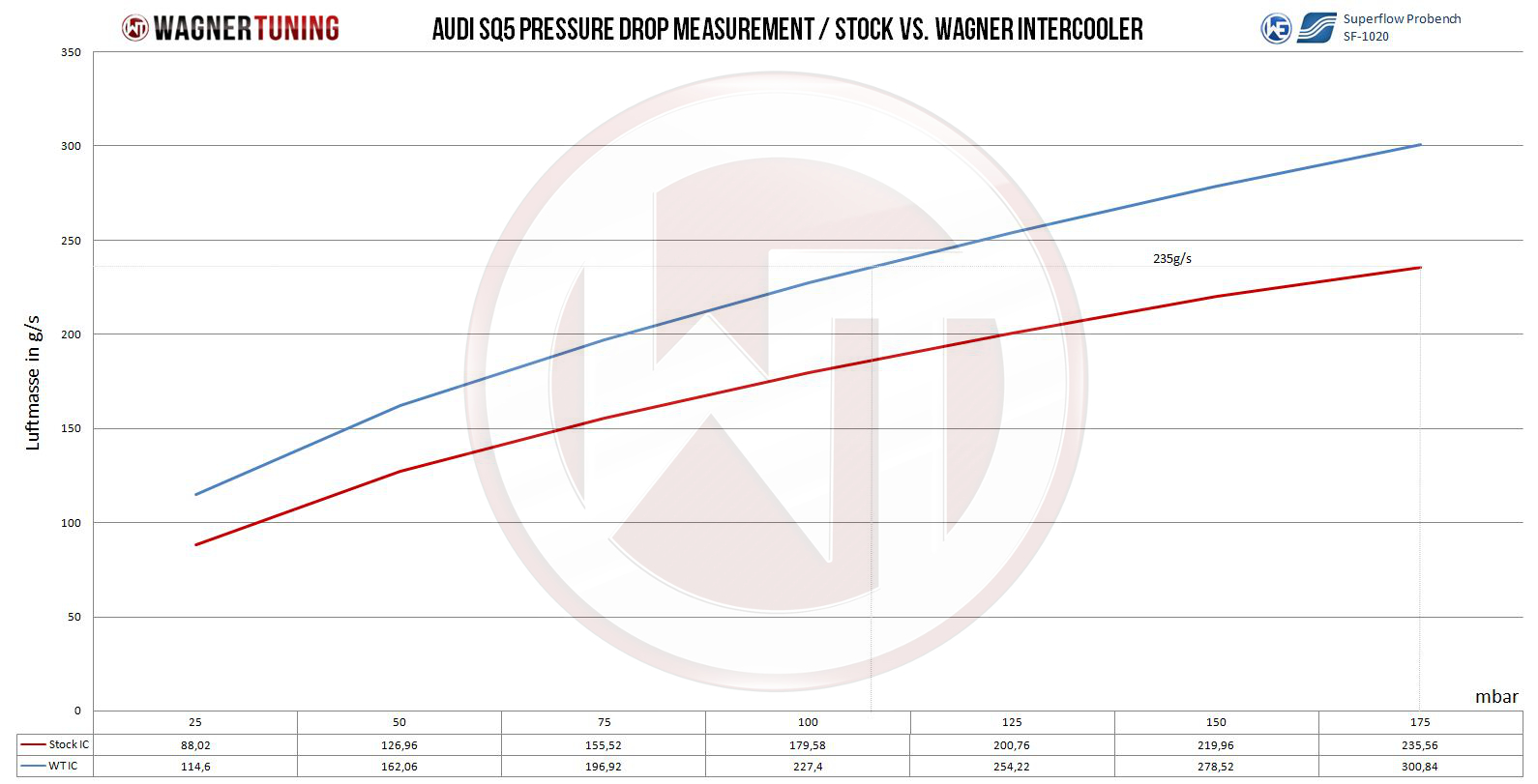 Wloty i wyloty intercoolera zostały zwiększone do Ø 67mm (2,64 cala), dzięki czemu zestaw zawiera wzmocnione węże silikonowe. Ten intercooler jest najlepszym wyborem, jeśli chodzi o wzrost wydajności i niskie temperatury wlotowe. Dużo mniejszy spadek ciśnienia niż intercooler OEM.