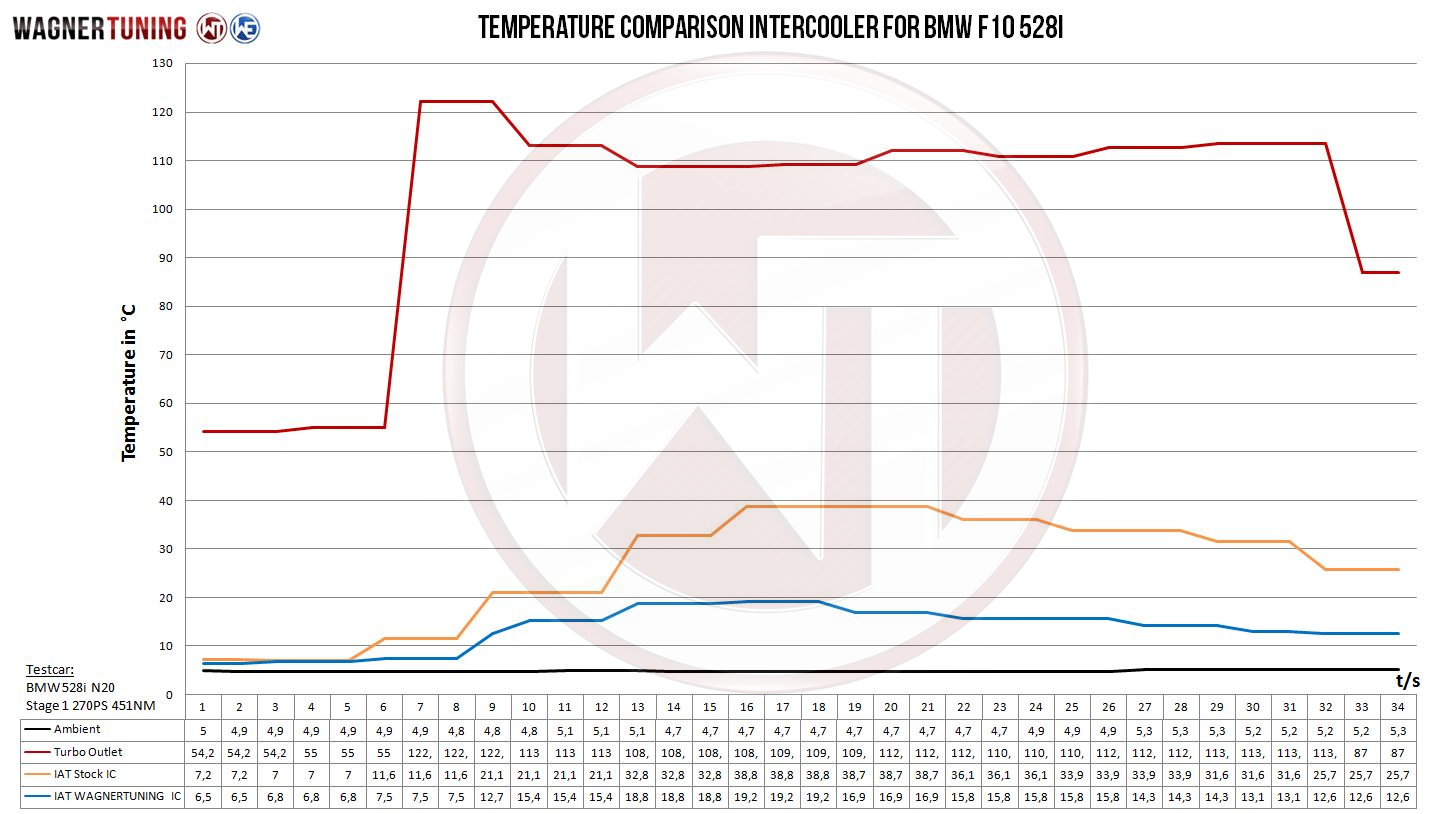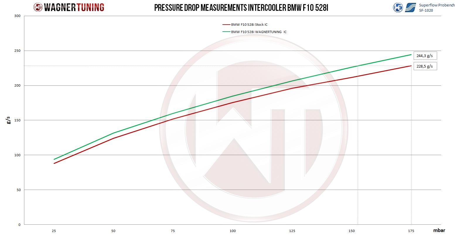 Wagner Tuning Competition Intercooler – maksymalna moc, minimalny wysiłek.Chcesz zapewnić swojemu BMW Serii 5 (F10/F11/F18) wyraźny wzrost osiągów? Odpowiedzią jest intercooler Wagner Tuning Competition.Dzięki wymiarom rdzenia intercoolera 500 mm x 254 mm x 110/55 mm (stopniowany) ten intercooler oferuje aż o 83% większą powierzchnię przepływu i o 62% większą objętość powietrza doładowującego w porównaniu z seryjnym intercoolerem. Pozwala to silnikowi zassać więcej powietrza, co przekłada się na wyraźny i natychmiastowy wzrost mocy. Nasz wysokowydajny rdzeń Competition został zaprojektowany tak, aby zapewnić odpowiedni przepływ powietrza do sąsiednich podzespołów, takich jak chłodnica wody, a mimo wysokiej wydajności pozostaje lekki – waży tylko 7,4 kg.Swobodnie kształtowane, zaprojektowane w CAD komory końcowe z odlewanego aluminium z wewnętrznymi przegrodami zapewniają optymalny przepływ wewnętrzny, minimalizują spadki ciśnienia i maksymalizują osiągi silnika. Oprócz poprawy wydajności intercooler ma powłokę antykorozyjną o znakomitych właściwościach przewodzenia ciepła, co gwarantuje optymalne chłodzenie i dodatkowo zwiększa osiągi. Montaż polega na wymianie fabrycznego intercoolera i jest prosty – nie są wymagane skomplikowane modyfikacje. Nasze produkty przechodzą rygorystyczne procedury kontroli jakości, aby spełniać najwyższe standardy.Przygotuj BMW Serii 5 (F10/F11/F18) na drogę. Z intercoolerem Wagner Tuning Competition doświadczysz skoku wydajności jak nigdy dotąd. Zamów teraz i poczuj różnicę!Zestaw Competition Intercooler pasuje do następujących pojazdów z silnikiem N20:BMW F07/F10/F11 520i 2010+BMW F07/F10/F11 528i 2010+Part number 200001092Zestaw zawiera:1 intercooler1 instrukcja montażu