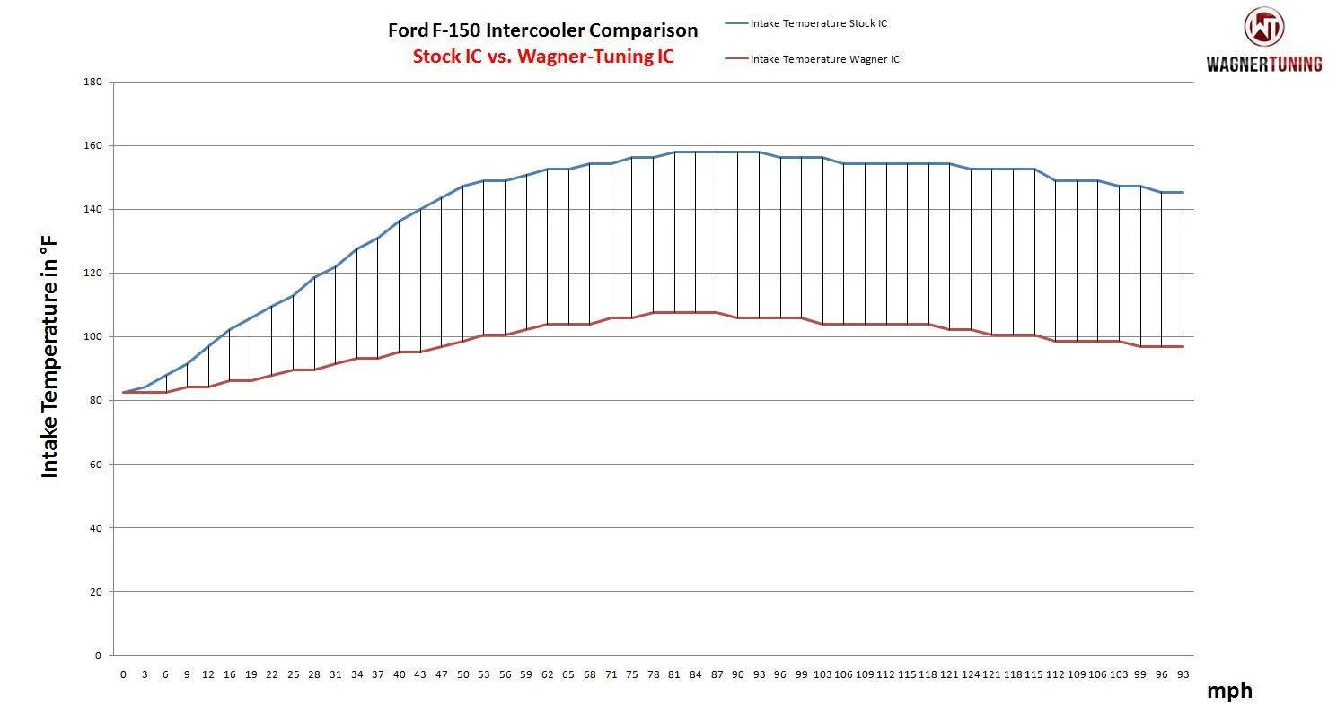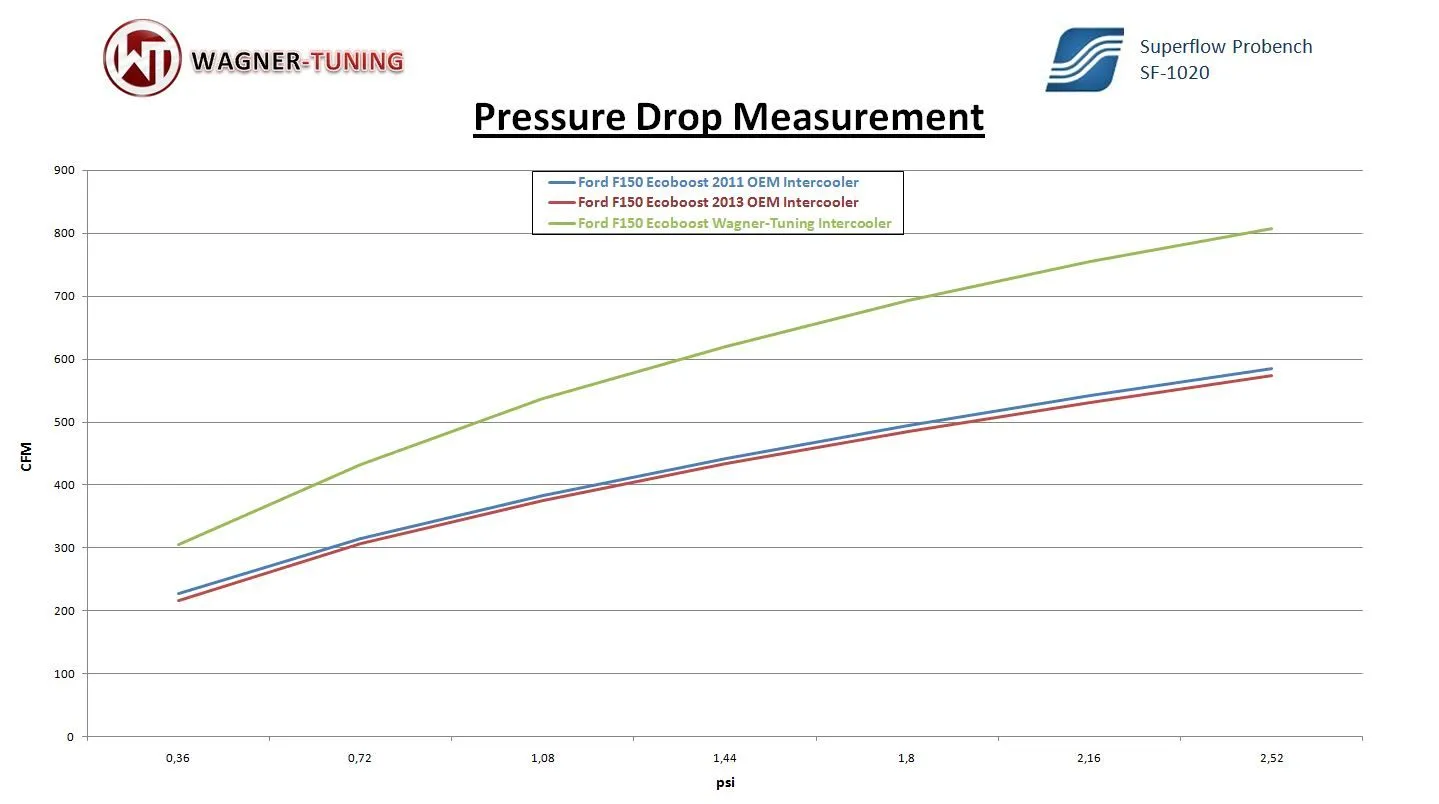 Revolutionary Intercooler Upgrade Kit for Ford F-150 (2011-2014) - Performance redefined!Increase the power and efficiency of your Ford F-150 (2011-2014) with our advanced intercooler upgrade kit. This kit sets the standard for performance enhancement and cooling.Our high performance intercooler features impressive core dimensions (440x500x100), which equates to an astounding 35% larger flow area and 120% higher intercooler volume compared to the original intercooler. This means more air, more power and a noticeable increase in performance.Our new Competition high-performance core ensures sufficient airflow for neighboring components such as the water cooler while remaining extremely lightweight. The end boxes of the intercooler are made of cast aluminum and have been optimized using flow analyses in the CAD system. With 50% lower backpressure, this intercooler is the perfect choice when low intake temperatures are a concern.our intercooler also fixes the problem of water condensate in the intercooler, which occurs in all 2012 models.Installation is straightforward and the quality of the kit will impress you. This upgrade ensures optimal cooling of the supercharged air and provides a significant increase in performance.all our products are subject to constant qualitative monitoring to ensure the highest standards.Prepare to take the performance of your Ford F-150 (2011-2014) to a whole new level. With the Intercooler Upgrade Kit from WAGNERTUNING, you will experience a significant increase in performance and optimal cooling of the supercharged air. Whether you're on the road or off, this kit will redefine your vehicle's performance.Upgrade your Ford F-150 (2011-2014) with confidence. Get ready to maximize your vehicle's performance!Part number 200001041Kit comes with:1 Intercooler