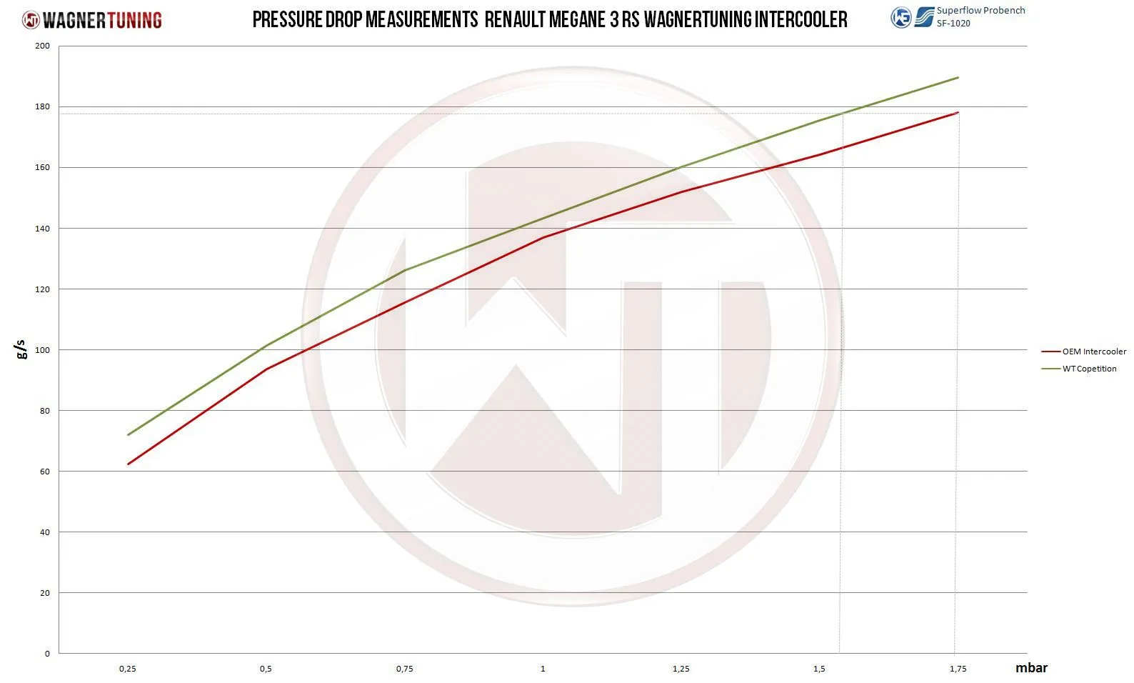 Zestaw Intercoolera WAGNER TUNING do : Renault Megane 3 GT 2,0 16V TCe 180KM (2009-2012)Renault Megane 3 GT 2,0 16V TCe 190PS (2012-2013)Renault Megane 3 GT 2,0 16V TCe 220KM (2013-2016)Renault Megane 3 RS 2,0 16V TCe 250KM (2009-2012)Renault Megane 3 RS 2,0 16V TCe 265PS (2012-2015)Renault Megane 3 RS 2,0 16V TCe 275PS (2014-)Renault Megane 3 1,9 dCi 130PS (2008-2012)Renault Megane 3 2,0 dCi 150KM (2010-2012)Renault Megane 3 2,0 dCi 160KM (2009-2016)Renault Megane 3 GT 2,0 dCi 163PS (2012-2016)Zestaw intercoolera o wymiarach rdzenia (620mm x206mm x150mm /schodkowy, o pojemności13.600cm³), zapewnia o 68% większą powierzchnię czołową i o 79% większą objętość w porównaniu z oryginalnym intercoolerem.Inżynierowie Wagner Tuning zwiększyli rozmiar i wydajność rdzenia intercoolera, a także ulepszyli konstrukcję boczków, aby usunąć wszelkie wąskie gardła OEM, co skutkuje zwiększonym natężeniem przepływu i poprawną chłodzenia przepływającego powietrza.Zbudowany z najwyższej jakości rdzenia Tube Fin z wewnętrznymi turbulatorami oraz w połączeniu z odlewanymi aluminiowymi boczkami zoptymalizowanymi przez CFD (dynamiczna symulacja przepływu) dla najlepszego możliwego wewnętrznego przepływu powietrza.Rezultatem są doskonałe właściwości chłodzące i znacznie mniejszy spadek ciśnienia niż w standardowym intercoolerze. Pomimo swoich rozmiarów waga całego intercoolera to tylko 8,4kgTen zestaw to najlepszy wybór, jeśli chodzi o wzrost wydajności i niskie temperatury wlotowe.Intercooler pokryty powłoką antykorozyjną o wysokim współczynniku odprowadzaniu ciepła. Zestaw kompletny i prosty w montażu dzięki idealnemu dopasowaniu.Wszystkie produkty Wagner Tuning poddawane są rygorystycznym kontrolą po procesie produkcyjnym.Zestaw zawiera: 1 Intercooler 1 Zestaw montażowy1 instrukcja montażu
