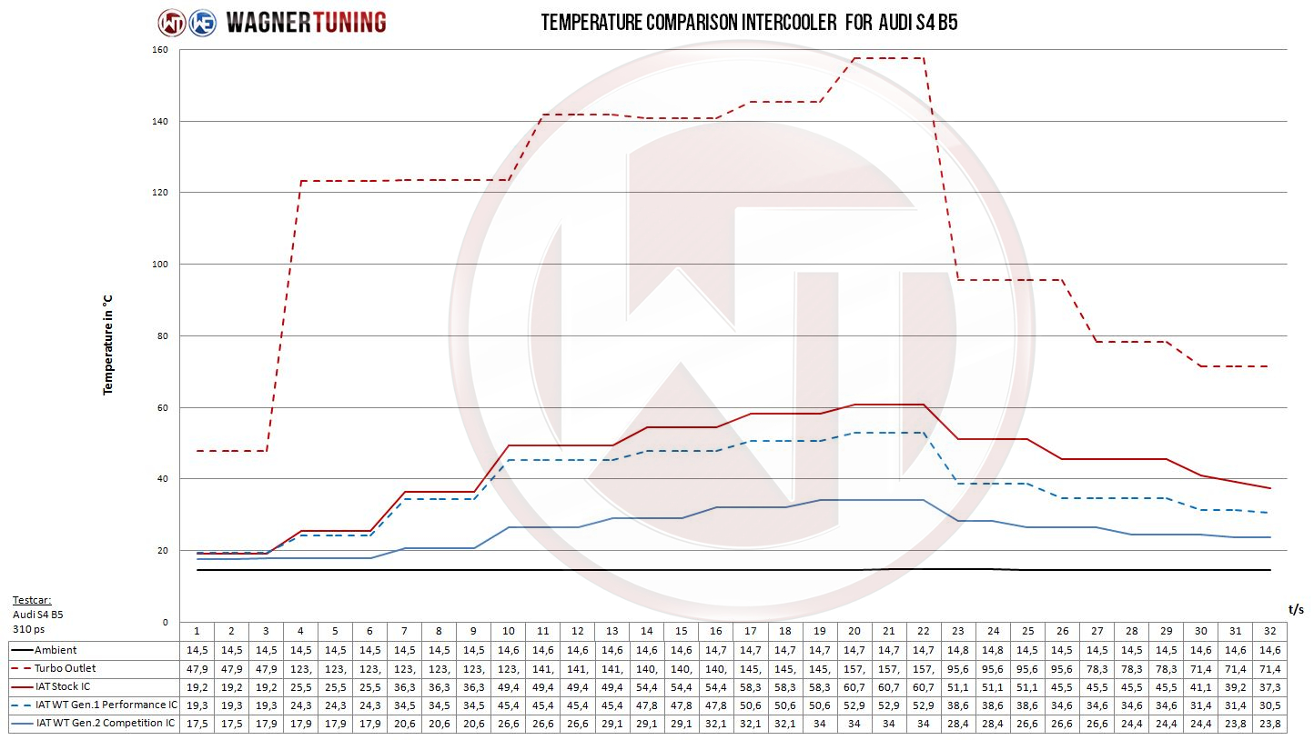 The WAGNERTUNING Audi B5 S4 Intercooler Kit is a high performance redesign of the original Audi OEM intercooler designed specifically for the B5 enthusiasts.