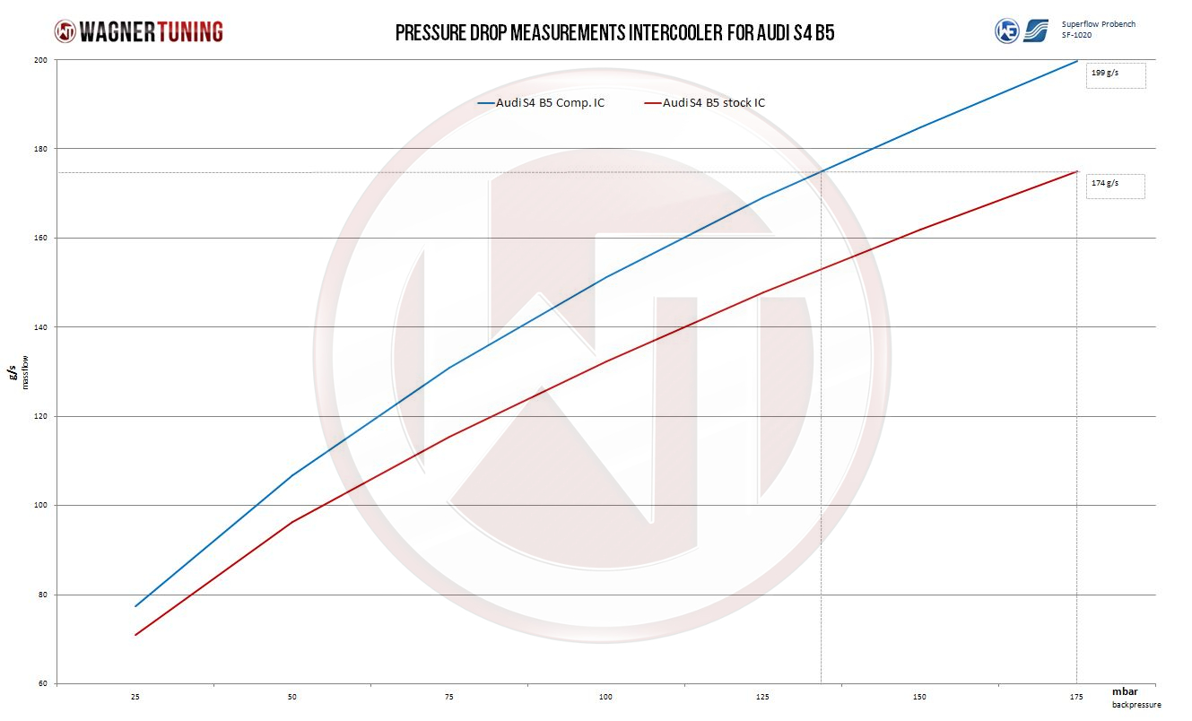 The WAGNERTUNING Audi B5 S4 Intercooler Kit is a high performance redesign of the original Audi OEM intercooler designed specifically for the B5 enthusiasts.