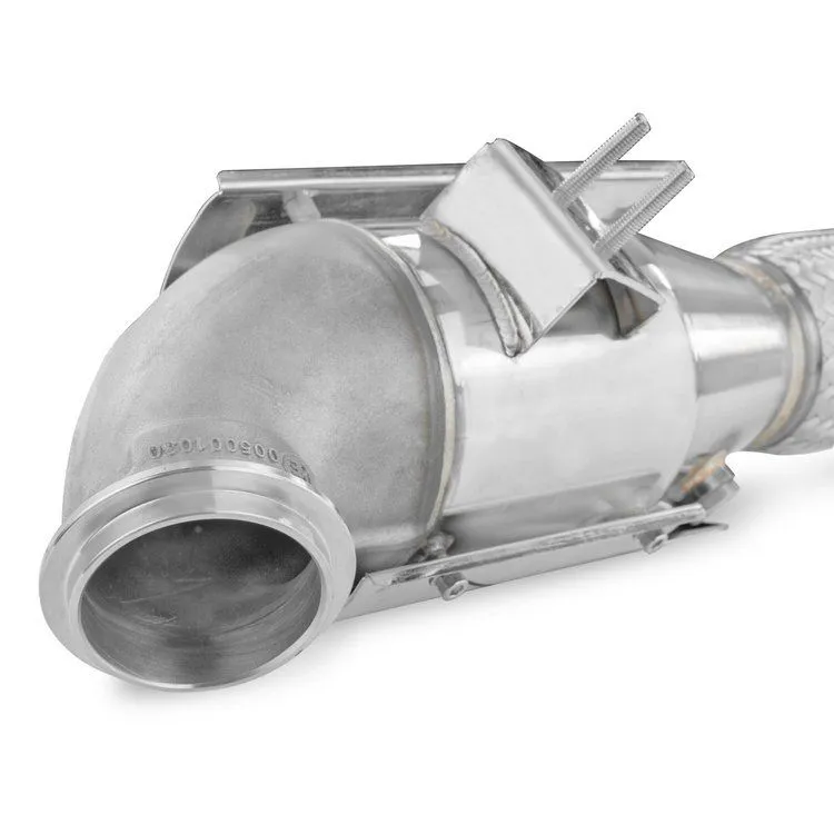 Pakiet Competition dla Ford Focus MK3 ST250 składa się z zestawu modernizacji intercoolera oraz zestawu downpipe. Intercooler Upgrade Kit 200001068 Competition Intercooler ma następujący rozmiar rdzenia (640mm x 200mm x 110mm = 14.080cm³), co zapewnia o 24% większą powierzchnię czołową i o 60% większą objętość w porównaniu z oryginalnym intercoolerem. Nasi inżynierowie powiększyli rozmiar i wydajność rdzenia intercoolera, a także udoskonalili konstrukcję end tanków, eliminując fabryczne wąskie gardła, co przełożyło się na wyższy przepływ i lepsze chłodzenie ładunku. Competition Intercooler Core z turbolatorami (waga: 10,5kg). Wykonany z najwyższej jakości rdzeni intercoolera typu Tube and Fin w połączeniu z odlewanym aluminium optymalizowanym w CAD. W celu uzyskania jak najlepszego wewnętrznego przepływu wykonano analizy przepływu i symulacje, aby zoptymalizować projekt. Ten intercooler to najlepszy wybór, gdy liczą się przyrosty mocy i niskie temperatury zasysanego powietrza. Znacznie mniejszy spadek ciśnienia niż w OEM Intercooler. Powłoka antykorozyjna o doskonałych właściwościach odprowadzania ciepła. Optymalne chłodzenie i wyraźnie większa moc. Zestaw gotowy do montażu (plug & play) z wykorzystaniem seryjnych przewodów. Brak konieczności cięcia. Montaż jest prosty, w miejsce OEM intercoolera. Wszystkie nasze produkty przechodzą rygorystyczną kontrolę jakości. Średnica króćców z obu stron wynosi 65mm. Competition Intercooler Kit pasuje do: Ford Focus MK3 ST250 2,0L 184KW/250PS (2012+) zawartość opakowania:1 intercooler malowany na czarno1 zestaw elementów montażowych1 instrukcja montażu Downpipe 500001025 wykonany z wysokiej jakości stali nierdzewnej 1.4301 (SS304)średnica przed i za katalizatorem Ø76mm200CPSI EU6 Racing Metal Catalytic Converter100% idealne dopasowanie, zamiennik OEMmniejsze obciążenie termiczne turbosprężarkiwiększa moc dzięki redukcji przeciwciśnieniaznacząco wyższy moment obrotowywaga: 5,7kg Może nie być dopuszczony do użytku drogowego w Twoim regionie.