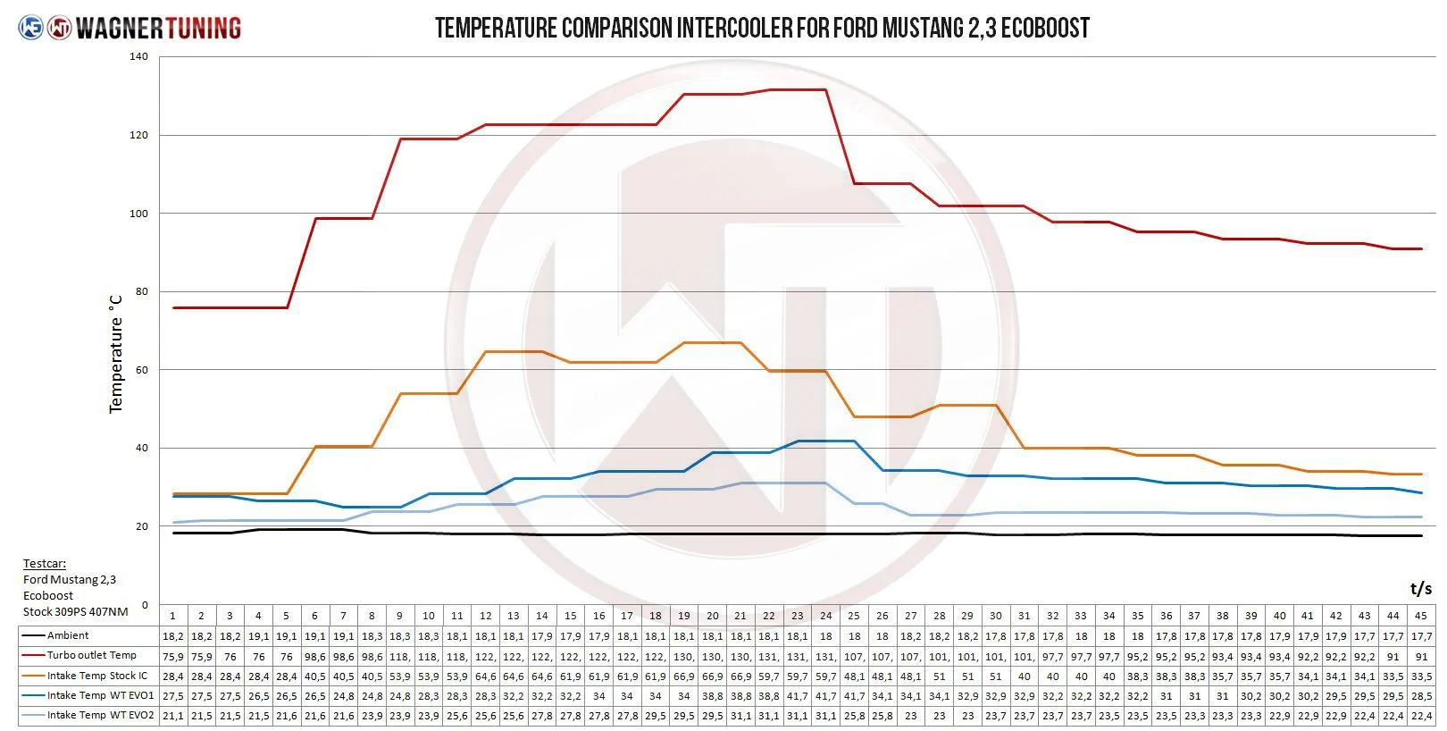 Zestaw intercoolera EVO2 Do FORD MUSTANG 2,3l EcoBoost 2015+ (w tym modele po faceliftingu) Intercooler EVO2 o wymiarach rdzenia (535 mm x 392 mm x 95 mm = 19,9 l / 21,06 cala x 15,43 cala x 3,7 cala = 1214,37 cala³) Wysokowydajny rdzeń intercoolera zapewnia o 175% większą powierzchnię czołową i o 226% większą objętość w porównaniu do intercoolera montowanego fabrycznie. Inżynierowie Wagner Tuning zwiększyli rozmiar i wydajność rdzenia intercoolera, a także ulepszyli konstrukcję boczków, aby usunąć wszelkie wąskie gardła OEM, co skutkuje zwiększonym natężeniem przepływu i poprawą chłodzenia przepływającego powietrza. Zbudowany z najwyższej jakości rdzenia Tube Fin z wewnętrznymi turbulatorami oraz w połączeniu z odlewanymi aluminiowymi boczkami zoptymalizowanymi przez CFD (dynamiczna symulacja przepływu) dla najlepszego możliwego wewnętrznego przepływu powietrza. Standardowe połączenia zostały wyeliminowane, a wlot i wylot zwiększone do średnicy Ø70mm/2,75" Rezultatem są doskonałe właściwości chłodzące i znacznie mniejszy spadek ciśnienia niż w standardowym intercoolerze. Pomimo swoich rozmiarów waga całego intercoolera to tylko 14,7kg. Ten zestaw to najlepszy wybór, jeśli chodzi o wzrost wydajności i niskie temperatury wlotowe. Intercooler pokryty powłoką antykorozyjną o wysokim współczynniku odprowadzaniu ciepła. Zestaw kompletny i prosty w montażu dzięki idealnemu dopasowaniu. Wszystkie produkty Wagner Tuning poddawane są rygorystycznym kontrolą po procesie produkcyjnym. Zestaw zawiera: - 1 Intercooler - 1 osłona Carbonowa - 1 zestaw montażowy - 1 instrukcja montażu - Orurowanie