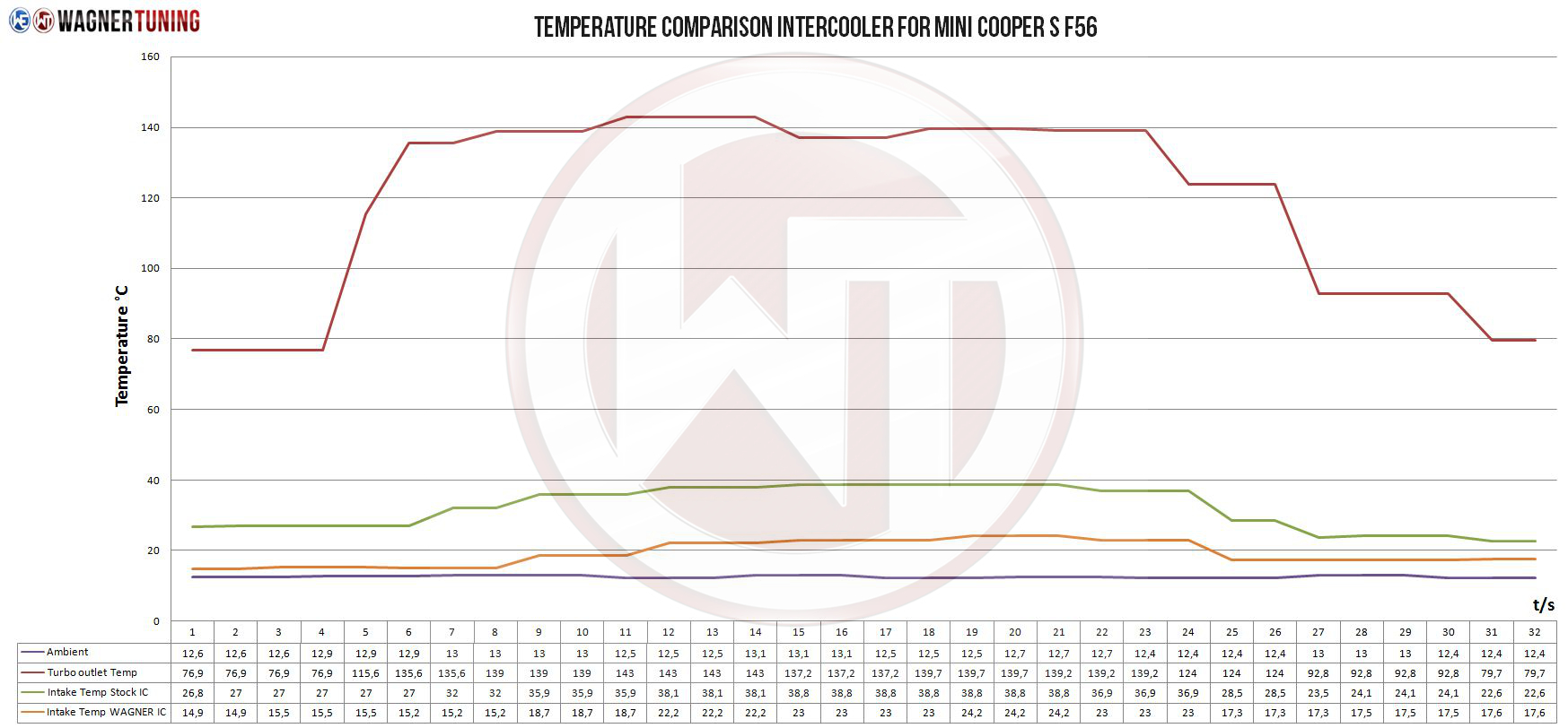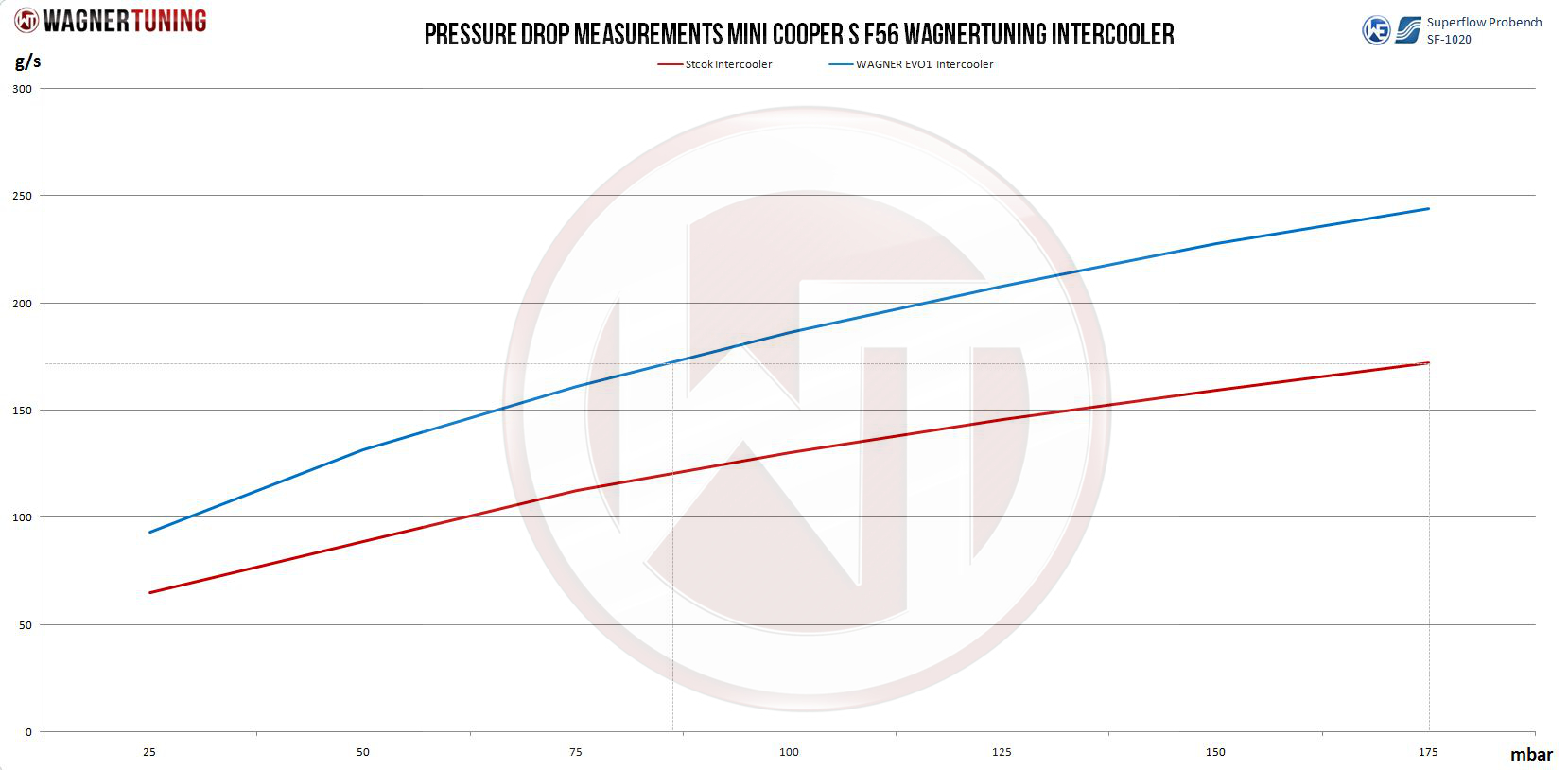 Inżynierowie Wagner Tuning zwiększyli rozmiar i wydajność rdzenia intercoolera, a także ulepszyli konstrukcję boczków, aby usunąć wszelkie wąskie gardła OEM, co skutkuje zwiększonym natężeniem przepływu i poprawą chłodzenia przepływającego powietrza.