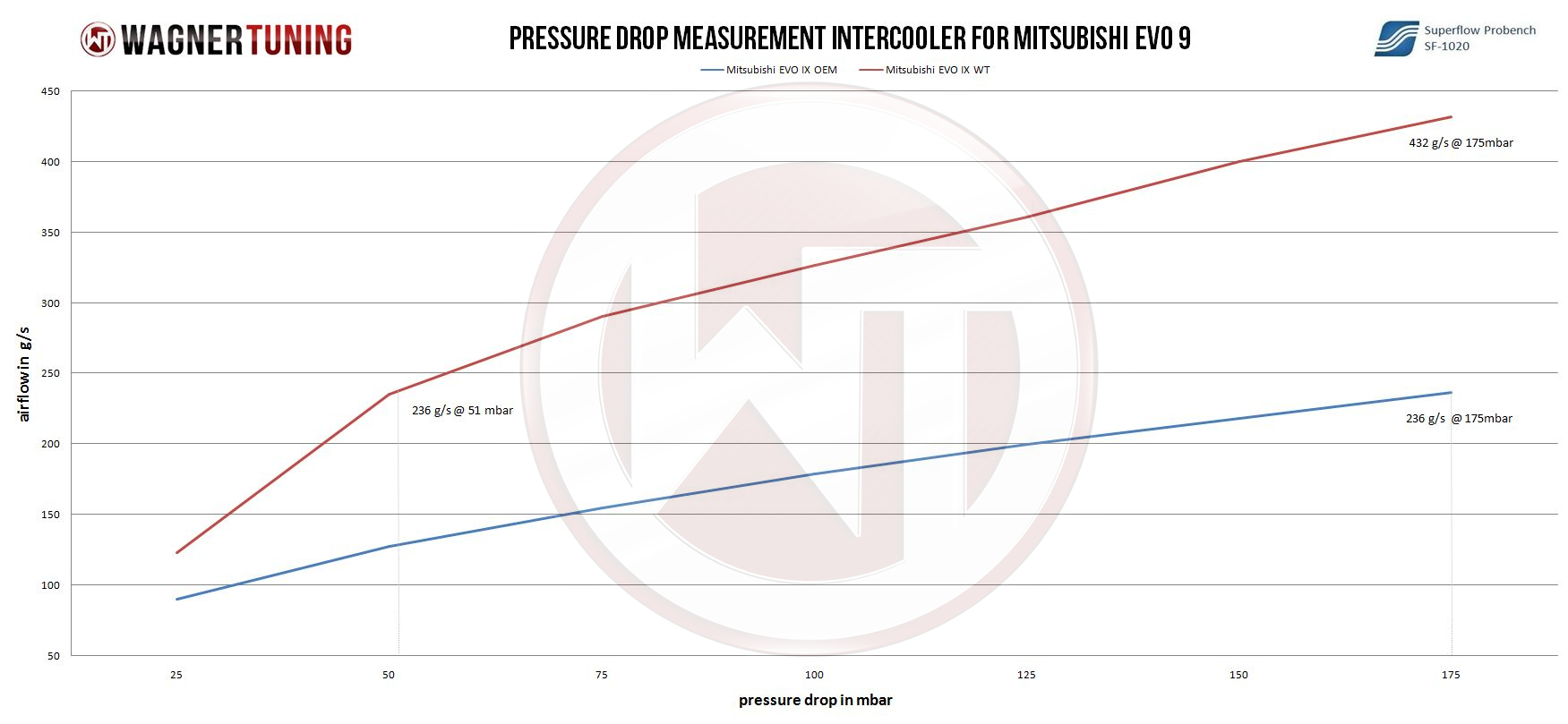 Inżynierowie Wagner Tuning zwiększyli rozmiar i wydajność rdzenia intercoolera, a także ulepszyli konstrukcję boczków, aby usunąć wszelkie wąskie gardła OEM, co skutkuje zwiększonym natężeniem przepływu i poprawą chłodzenia przepływającego powietrza.