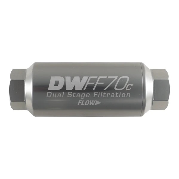 DW in-line fuel filters are compatible with a wide range of fuels, including pump gas, race gas, MTBE, ethanol, methanol, and diesel. DW recommends a maximum service interval of 12 months or 12,000 miles. Shorter service intervals are recommended with harsher conditions and corrosive fuels.