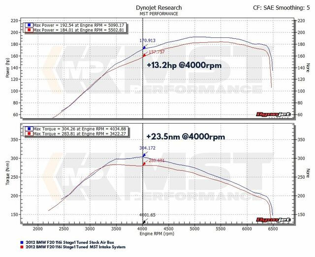 Układ dolotowy poprawiający osiągi przeznaczony do BMW 116i 118i 120i 316i 318i & 320i z silnikami N13 1.6T Właściwości: - Lepsza reakcja przepustnicy - Malowana proszkowo na czarno osłona termiczna i rura wlotowa - Wyniki testów na hamowni: maksymalny przyrost mocy 12-14 KM (może się różnić w zależności od pojazdu) - Łatwy w utrzymaniu suchy filtr harmonijkowy - Zimne powietrze prosto do turbosprężarki Korzyści wynikające ze stosowanie zestawu: Ten zestaw dolotowy zapewnia zwiększony przepływ powietrza i zwiększa głośność zasysanego powietrza w porównaniu ze standardowym dolotem. Niezależnie od tego, czy jest montowany w zwykłym samochodzie czy w pojeździe po tuningu, możesz być pewny, że przyniesie on pozytywny wzrost osiągów. MST Performance stosuje najwyższej jakości komponenty we wszystkich swoich zestawach, poniżej przedstawiamy co zawiera ten zestaw. Malowana proszkowo na czarno osłona termiczna Malowana proszkowo na czarno rura wlotowa Czerwony filtr harmonijkowy Łącznik silikonowy Pełny zestaw montażowy z instrukcją krok po kroku Silikonowy TIP Zestaw pasuje do: BMW 116i (F20/F21) 1.6T (N13) 2012-2015 BMW 118i (F20/F21) 1.6T (N13) 2012-2015 BMW 120i (F20) 1.6T (N13) 2012-2015 BMW 120i (F20/F21) 1.6T (N13) 2012-2015 BMW 316i (F30) 1.6T (N13) 2012-2015 BMW 316i (F31) 1.6T (N13) 2012-2015 BMW 320i ED (F30) 1.6T (N13) 2012-2015 BMW 320i ED (F31) 1.6T (N13) 2012-2015