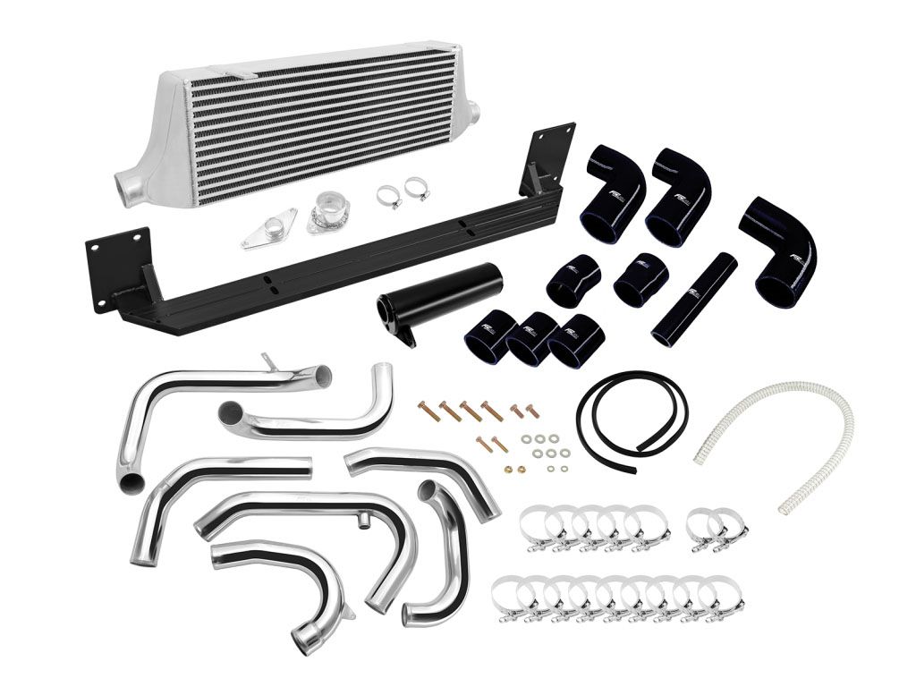 Dedykowany zestaw intercoolera do Subaru Impreza WRX STI GRB 2008-2011 Zestaw dedykowany do Subaru Imprezy 08+ STI złożony jest z odpowiednio dociętych i wyprofilowanych rur oraz kolanek silikonowych i aluminiowych, intercooler posiada mocowania do karoserii. Nasz zestaw jako jedyny w na rynku posiada łączniki silikonowe FMIC.EU z pięciokrotnym oplotem i grubą ścianką co zapewnia dużą wytrzymałość. Zestaw zawiera wszystkie części niezbędne do prawidłowego montażu intercoolera w samochodzie. Zalecany montaż w warsztacie tuningowym. Intercooler posiada bardzo wydajny rdzeń o wymiarach 600x300x76mm , grube ścianki wykonane z najwyższej jakości polerowanego aluminium, co gwarantuje ogromną wytrzymałość, świetne chłodzenie, a także doskonałe przepływy powietrza (w przeciwieństwie do intercoolerów z samochodów dostawczych nie "zapychają" dolotu). Znakomicie zastępuje seryjny intercooler zwiększając osiągi samochodu. Oferowane intercoolery posiadają dużo gęstszy, naprzemiennie ułożony radiator, co gwarantuje ogromną poprawę chłodzenia! Oprócz tego widoczny wyżej zewnętrzny radiator ma dodatkowo nacinane (wentylowane) żeberka, dzięki czemu znacznie szybciej oddaje swoje ciepło.