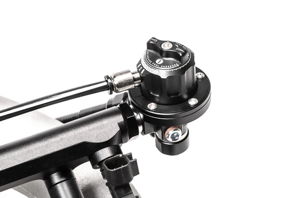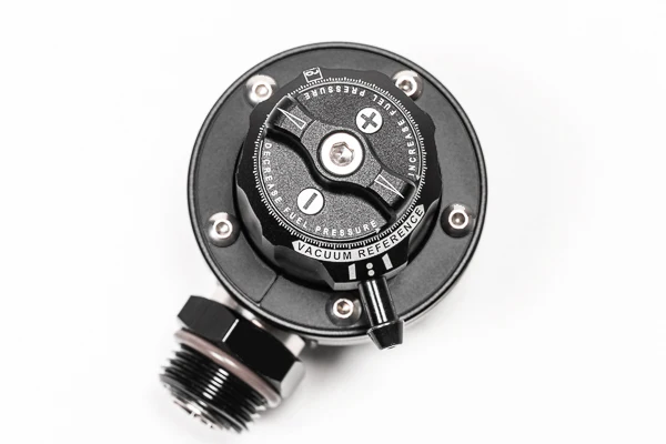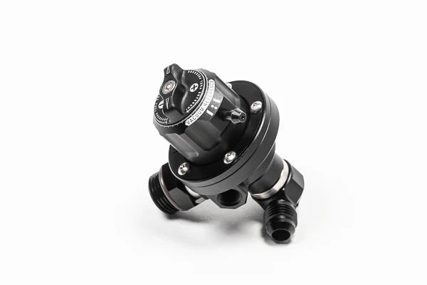 The Radium Direct Mount Regulator (DMR) is a compact high performance adjustable EFI fuel pressure regulator that is capable of managing high flow fuel systems. It's compact package fits in tight spaces, but does not compromise on performance. MOUNTING The DMR is designed with a unique highly versatile mounting system. It can be mounted directly to a 8AN ORB fuel rail using the included 360 degree swiveling adapter. If your fuel rail does not have an 8AN ORB port, Radium Engineering offers fuel rails for a wide variety of engines, all of which feature 8AN ORB ports (An adapter is also available for 10AN ORB fuel rail ports).Alternatively, the DMR can be mounted off-rail using remote mount kit 20-0624. The compact size fits in areas with limited space, without sacrificing performance. PLUMBING The main inlet port on the regulator is female threaded for 6AN ORB. A swiveling double ended adapter is included which allows the regulator to be used in any compatible 8AN ORB fuel rail port, such as those found Radium Engineering fuel rails. Other swivel adapters are available but sold separately. If mounting the regulator off-rail, other adapters can be screwed into this regulator port (sold separately). The bottom return port is threaded for 6AN ORB. The provided 90 degree 6AN male fuel return fitting can swivel 360 degrees, permitting a multitude of mounting configurations. Other adapter fittings can be installed in the return port if needed (sold separately). This regulator has two 1/8' NPT side port locations that can be used with a pressure gauge, transducer, temperature probe, etc. Two 1/8' NPT plugs are provided. FUEL PRESSURE ADJUSTMENT RA-series regulators feature the first tool-less pressure adjustment. A jam nut and set screw are no longer required. With a simple turn of the knob, pressure will be increased or decreased. Additionally, there are no inherent air (vacuum/boost) leaks through the threads that traditionally a smoke detector would pick up. Barbed Fitting: A black zinc-plated 3/16' (5mm) barb machined from high strength steel that is compatible with the following vacuum hoses: 5/32' (4mm), 3/16' (5mm), and 7/32' (6mm). 3AN Male Fitting: A black zinc-plated adapter machined from high strength steel that is compatible with 3AN hose ends. Push-To-Connect: A nickel-plated brass fitting with Buna-N O-rings that is compatible with hard plastic 1/4' OD tubing. Vacuum Plug: A black oxide stainless steel screw that is used to maintain a constant (non dynamic) fuel pressure. Beginning in the mid 1990s, vehicle manufacturers started transitioning to returnless fuel systems to lower EVAP emissions. To keep temperatures lower, these regulators are mounted inside the tank and do NOT have the ability to be vacuum referenced. This plug would be required in this scenario. NOTE: When installing the vacuum fitting, it is recommended to use a wicking medium-strength threadlocker. FUEL PRESSURE STABILITY With years of track and bench testing data, the RA-series regulators have been refined to optimize pressure management. A newly designed single stainless steel return orifice generates laminar flow that enhances stability control. Minimum Pressure: 18.5psi (1.3bar) Maximum Pressure: *N/A *This is rhetorical. The maximum pressure is dependent on the relief valve inside the pump or the maximum current the fuel pump controller allows. ABOUT FUEL PRESSURE DROP AFTER SHUTOFF Some installations may experience a rapid fall of fuel pressure when the engine and/or fuel pump shuts off. This is considered normal operation for aftermarket fuel pressure regulators, regardless of brand. This can occur due to the diaphragm seat and the return orifice not fully sealing when fuel flow is stopped. For regulators to have the ability to regulate high fuel flow rates, the size of these components must be increased. This creates larger sealing surfaces between the components, preventing them from forming a perfect seal, even with high spring rates. This is not an indication of an issue or defect and it is not a cause for concern on its own. You do NOT need to contact technical support about this issue. Fuel pressure will reset immediately when the fuel pump is activated again. If the engine is experiencing other symptoms such as long cranking to start, or delays in pressure building when cranking, these symptoms are unrelated to the regulator. There is likely an issue with the fuel feed hose draining back to the tank. This is most likely due to an internal leak somewhere in the pump module, ie: a venturi jet pump, or the lack of a fuel pump check valve. 1:1 RISING RATE VACUUM REFERENCE RA-series regulators feature a 360 degree swiveling vacuum reference port that is double O-ring sealed. This is the first in the industry. It permits the installer to quickly point the vacuum fitting in any direction with no tools required. There are 4 interchangeable 10-32 threaded vacuum port fittings provided to cover all scenarios. Barbed Fitting: A black zinc-plated 3/16" (5mm) barb machined from high strength steel that is compatible with the following vacuum hoses: 5/32" (4mm), 3/16" (5mm), and 7/32" (6mm). 3AN Male Fitting: A black zinc-plated adapter machined from high strength steel that is compatible with 3AN hose ends. Push-To-Connect: A nickel-plated brass fitting with Buna-N O-rings that is compatible with hard plastic 1/4" OD tubing. Vacuum Plug: A black oxide stainless steel screw that is used to maintain a constant (non dynamic) fuel pressure. Beginning in the mid 1990s, vehicle manufacturers started transitioning to returnless fuel systems to lower EVAP emissions. To keep temperatures lower, these regulators are mounted inside the tank and do NOT have the ability to be vacuum referenced. This plug would be required in this scenario. NOTE: When installing the vacuum fitting, it is recommended to use a wicking medium-strength threadlocker. FUEL COMPATIBILITY All RA-series regulators are suitable with all gasoline types 
