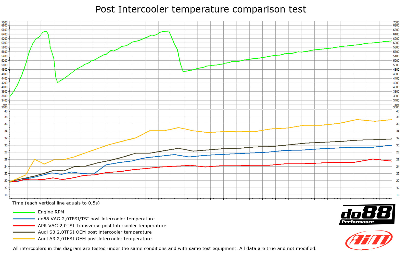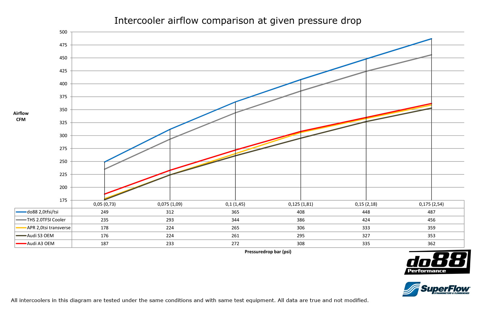 Zwiększona o 99% objętość rdzenia to osiągnięcie, z którego jesteśmy dumni. To niezwykła różnica. Delikatnie mówiąc, zauważalne. Silnik lepiej ciągnie na wszystkich obrotach i wytrzymuje wielokrotne uruchamianie pełnego otwarcia przepustnicy bez nagrzewania się. Pogląd, że intercooler jest czymś, co należy ulepszyć dopiero po gruntownym tuningu silnika, jest fałszywy, choć szeroko rozpowszechniony wśród klientów i osób zajmujących się samochodami. Podczas gorących szwedzkich letnich dni, przy wielokrotnych szarpaniach, jeździe inspirującej lub nawet podczas zwykłej jazdy w cieplejszym klimacie, silnik nie wymaga dużego wysiłku, aby wytworzyć niebezpiecznie wysokie temperatury na wlocie – nawet w standardowym, nie dostrojonym silniku. , samochód. Wydajność chłodzenia z intercoolerem OEM jest w wielu przypadkach gorsza, co wpływa na pobór mocy użytkowej. Należy wyeliminować ciepło, w przeciwnym razie obiecana moc zostanie zmniejszona w miarę rozpoczęcia podawania gazu.