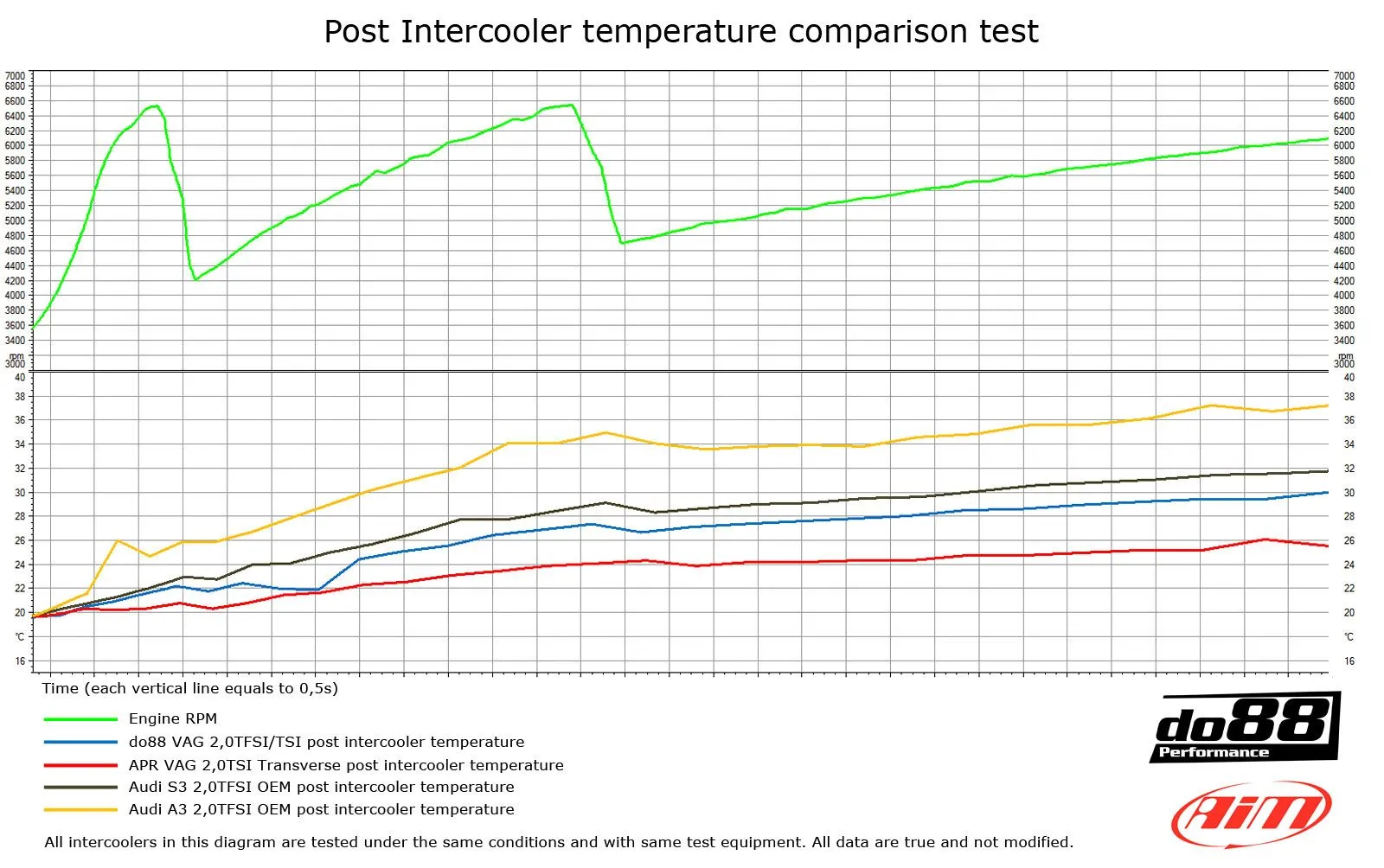 - Niższa temperatura powietrza za intercoolerem w tych samych warunkach: 24°C (36°C), 12°C niższa!