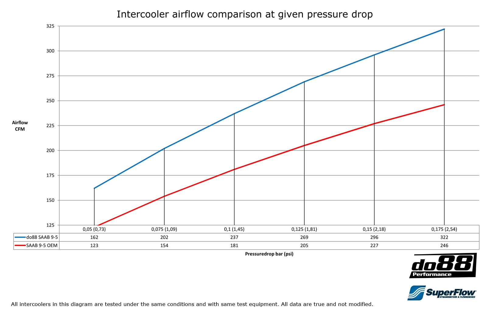 Powszechnym nieporozumieniem jest przekonanie, że intercooler zamontowany w tej pozycji nie może zapewnić dobrej wydajności i że przedni intercooler montowany / FMIC byłby znacznie lepszy. Ale w rzeczywistości intercooler performance do88 jest znacznie lepszy niż większość instalacji FMIC, gdzie możliwe jest zamontowanie tylko rdzenia o małej powierzchni czołowej, a często także częściowo za belką zderzaka, co jeszcze bardziej zmniejsza zdolność chłodzenia i często osiąga się chłodzenie poniżej poziomu OEM intercooler.