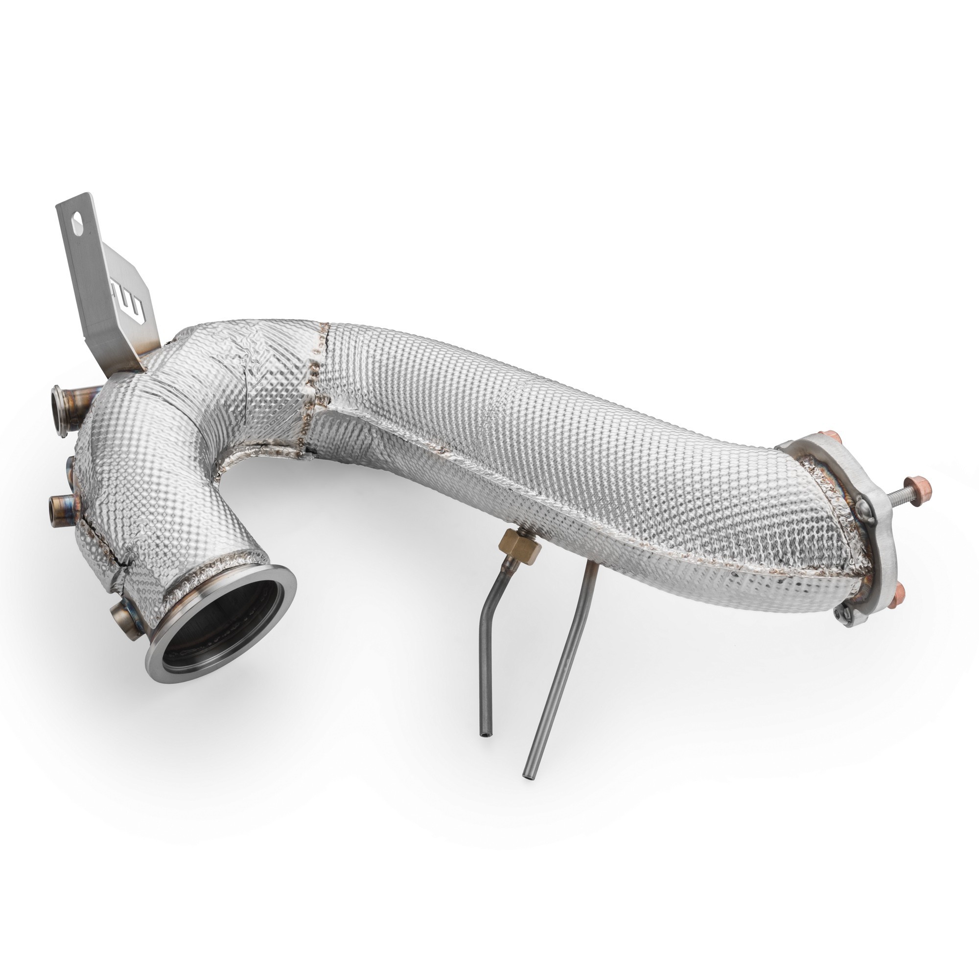Downpipe w całości wykonany ze stali kwasoodpornej (T304, X5CrNi18-10, 1.4301, AISI 304, 0H18N9). Każdy element produktu wykonany w technologii CNC.