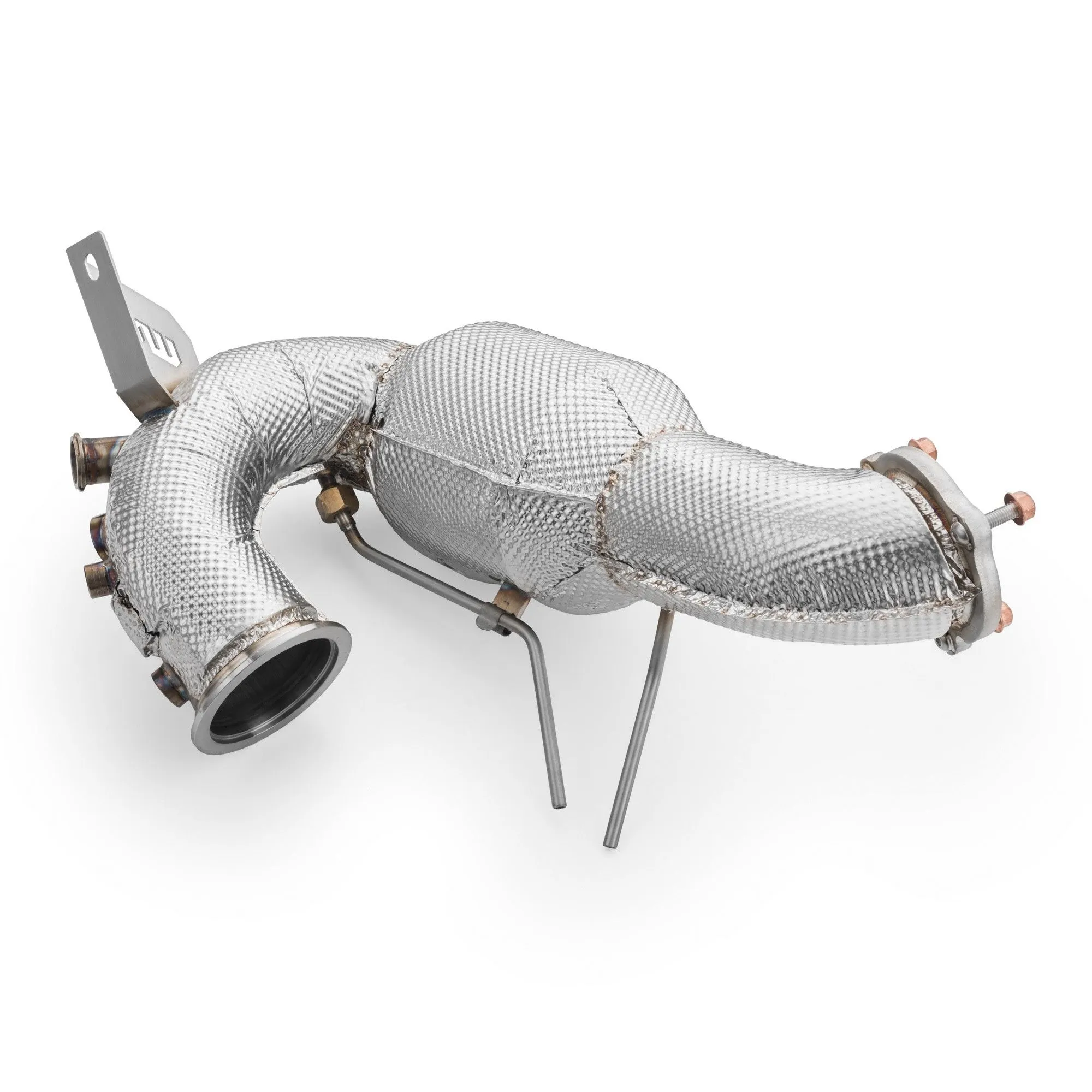 Downpipe AUDI A4 S4 / Avant Quattro / Avant 3.0 TDI +osłona termiczna 3.0 TDI2016-2021286 KMQuattro Średnica rury - 76 mm Istnieje możliwość wyboru wersji:bez tłumika, z tłumikiem lub z katalizatorem. Dodatkowo można wybrać wersję z osłoną termiczną lub bez. Produkt nie posiada homologacji i nie może być dopuszczony do użytku na drogach publicznych UE. Downpipe AUDI A4 S4 / Avant Quattro / Avant 3.0 TDI +osłona termiczna Opcje do wyboru: 220109 - Downpipe przelotowy. 220109S - Downpipe przelotowy z tłumikiem. 220109H - Downpipe przelotowy w osłonie termicznej. 220109SH - Downpipe przelotowy z tłumikiem w osłonie termicznej. 220109C/E6 - Downpipe z katalizatorem 90603344 o przepustowości 200 cpsi, spełniającym normę emisji spalin EURO 6. 220109CH/E6 - Downpipe w osłonie termicznej z katalizatorem 90603344 o przepustowości 200 cpsi, spełniającym normę emisji spalin EURO 6. 220109C/OBD - Downpipe z katalizatorem 90603444 o przepustowości 200 cpsi, spełniającym normę emisji spalin na potrzebę OBD. 220109CH/OBD - Downpipe w osłonie termicznej z katalizatorem 90603444 o przepustowości 200 cpsi, spełniającymi normę emisji spalin na potrzebę OBD. 220109C/MS - Downpipe z katalizatorem 90603242 o przepustowości 100 cpsi, spełniającym normę emisji spalin na potrzebę Motorsport. 220109CH/MS - Downpipe w osłonie termicznej z katalizatorem 90603242 o przepustowości 100 cpsi, spełniającymi normę emisji spalin na potrzebę Motorsport. Downpipe AUDI A4 S4 / Avant Quattro / Avant 3.0 TDI +osłona termicznaposiada następujące przyłącza: jedno gniazdo na sondę lambda dwie rurki na przewód pomiaru ciśnienia dwa gniazda na czujnik temperatury spalin jedno gniazdo na czujnik NOx gniazdo na wtryskiwacz środka redukującego 3 śruby wraz z nakrętkami i podkładkami w zestawie Downpipe AUDI A4 S4 / Avant Quattro / Avant 3.0 TDI +osłona termicznaNumery OE: 8W0254750SX 8W0254751CX 8W0254751C 8W0254751BX 8W0254750Q 8W0254750S 8W0254751D 8W0254750RX 8W0254751DX Downpipe w całości wykonany ze stali kwasoodpornej (T304, X5CrNi18-10, 1.4301, AISI 304, 0H18N9). Każdy element produktu wykonany w technologii CNC.Produkt posiada 24-miesięczną gwarancję producenta.Sprawdź też inne downpipe z naszej oferty.