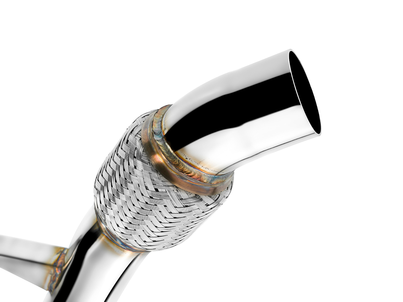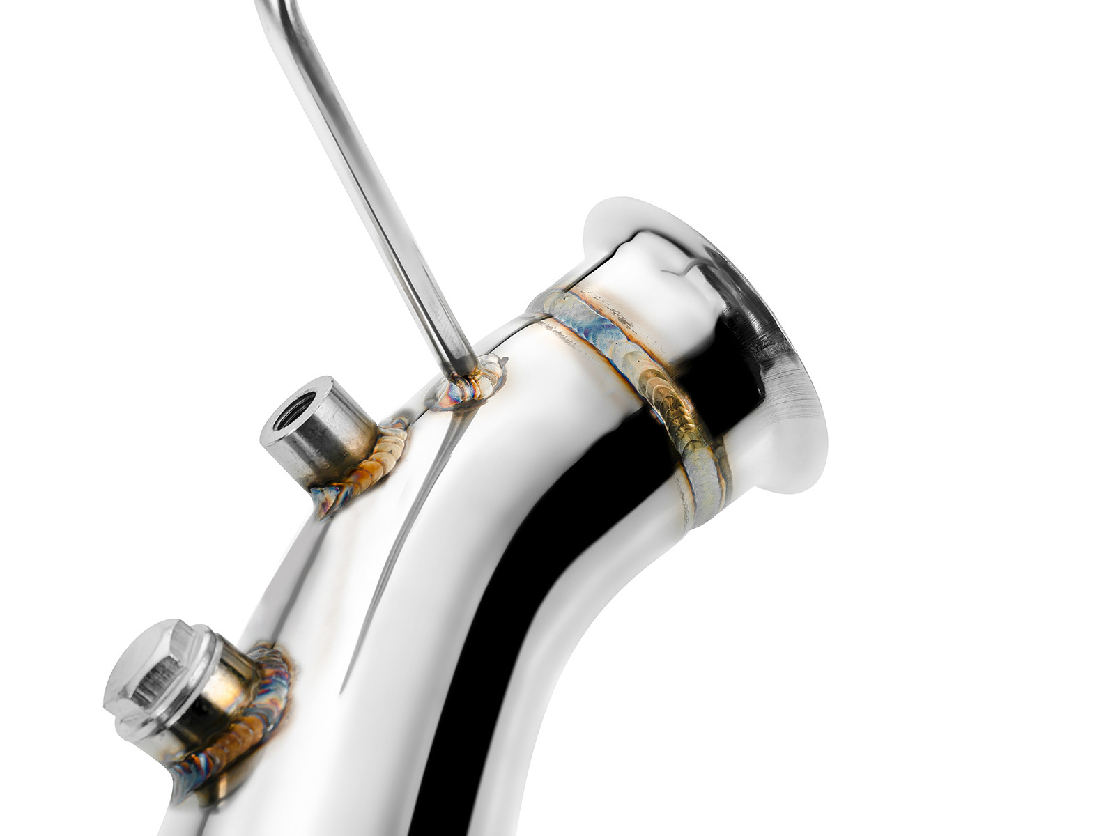 Downpipe to nieodzowny element tuningu każdego turbodoładowanego samochodu. Po jego zamontowaniu zostaje odetkany układ wydechowy dzięki czemu odczuwalnie poprawia się "dół" silnika, czyli znika efekt tzw. turbo dziury oraz zwiększa się moc i moment obrotowy. Racing Downpipe Fmic.Pro to nowa jakość i wytrzymałośc elementów układu wydechowego. Nasze DPy wykonane są z wysoko gatunkowej stali kwasoodpornej o grubości ścianki 1,5mm. Każdy składnik produktu wykonany jest starannie w technologii CNC co przekłada się na powtarzalność gotowego elementu . W produkcji DP zostały użyte łączniki elastyczne które posiadają wewnętrzny peszel, który znacznie wzmacnia całą konstrukcje dzięki czemu nie ma mowy o zasysaniu się całości do środka.