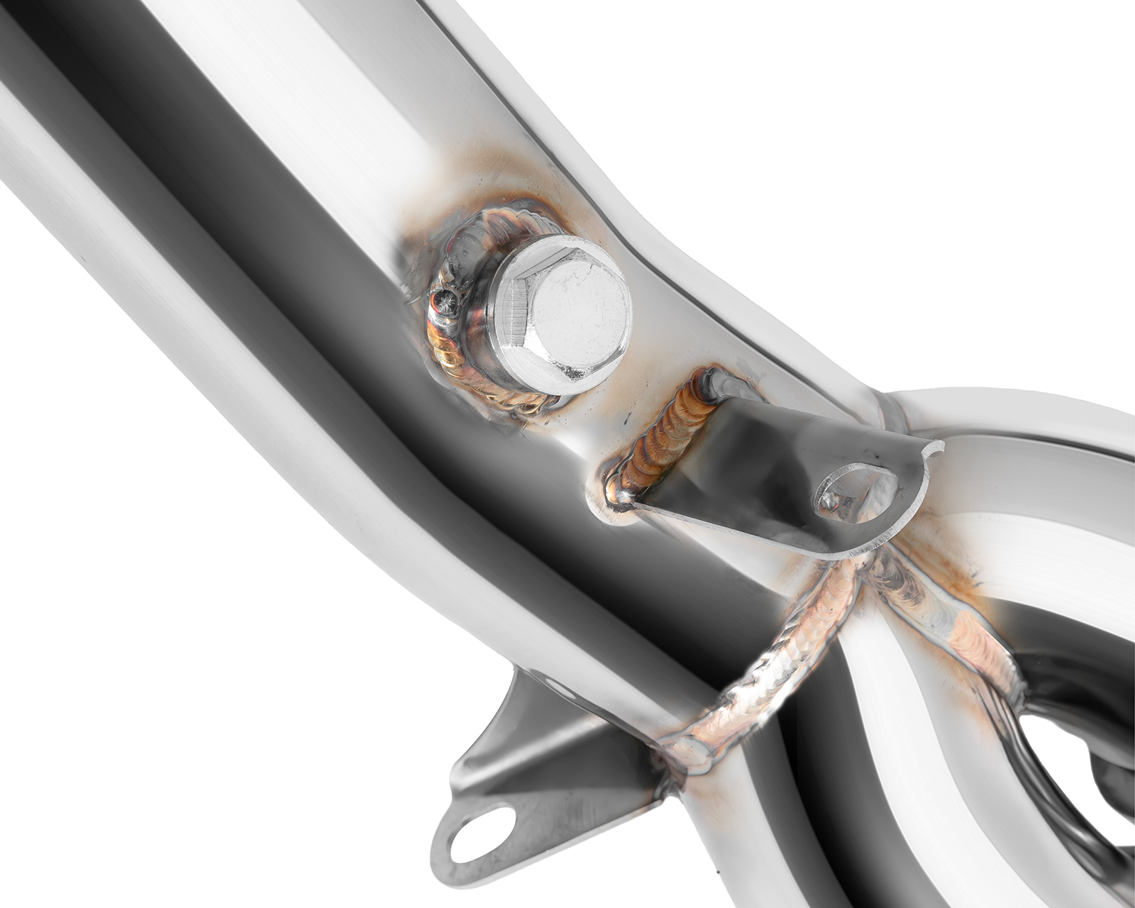 Downpipe FMIC.Pro BMW E90 E91 E92 N55 2009-2013 Downpipe to nieodzowny element tuningu każdego samochodu turbodoładowanego. Jego montaż pozwala „odetkać” układ wydechowy, co bezpośrednio przekłada się na poprawę osiągów – szybszą reakcję turbiny, zniwelowanie efektu tzw. turbo dziury oraz zwiększenie mocy i momentu obrotowego, zwłaszcza w niskim i średnim zakresie obrotów. Dodatkowo downpipe nadaje układowi wydechowemu bardziej rasowe brzmienie i poprawia kulturę pracy całego systemu doładowania. Downpipe FMIC.Pro to gwarancja najwyższej jakości i wytrzymałości. Element został wykonany z wysokogatunkowej stali nierdzewnej SS304 o grubości ścianki 1,5 mm, co zapewnia pełną odporność na ekstremalne temperatury oraz korozję. Flansze wycinane w technologii CNC o grubości 10 mm gwarantują idealne spasowanie z turbosprężarką oraz dalszą częścią układu, a spawy wykonane metodą TIG zapewniają solidność i estetykę konstrukcji. Downpipe posiada konstrukcję bez zwężeń na całej długości, co pozwala uzyskać maksymalną przepustowość spalin. Wyposażony jest w dwa gniazda sond lambda M18, dzięki czemu bez problemu współpracuje z fabrycznym osprzętem. - Średnica wejścia: 76 mm - Materiał: stal nierdzewna SS304 - Flansze wycinane CNC, grubość 10 mm - 2 × gniazdo sondy lambda M18 - Grubość ścianki: 1,5 mm - Spawany metodą TIG - Konstrukcja bez zwężeń – maksymalny przepływ spalin Dedykowany do: BMW E90/E91/E92 N55 335i 306 km RWD 2009-2013
