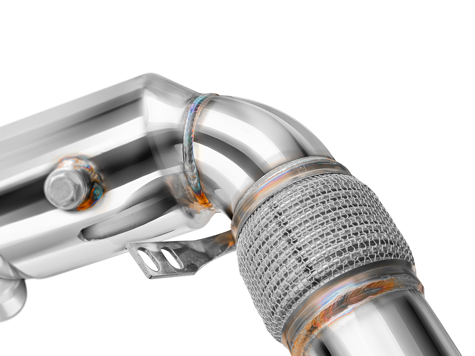 Downpipe to nieodzowny element tuningu każdego turbodoładowanego samochodu. Po jego zamontowaniu zostaje odetkany układ wydechowy dzięki czemu odczuwalnie poprawia się "dół" silnika, czyli znika efekt tzw. turbo dziury oraz zwiększa się moc i moment obrotowy. Racing Downpipe Fmic.Pro to nowa jakość i wytrzymałośc elementów układu wydechowego. Nasze DPy wykonane są z wysoko gatunkowej stali kwasoodpornej o grubości ścianki 1,5mm. Każdy składnik produktu wykonany jest starannie w technologii CNC co przekłada się na powtarzalność gotowego elementu . W produkcji DP zostały użyte łączniki elastyczne które posiadają wewnętrzny peszel, który znacznie wzmacnia całą konstrukcje dzięki czemu nie ma mowy o zasysaniu się całości do środka.
