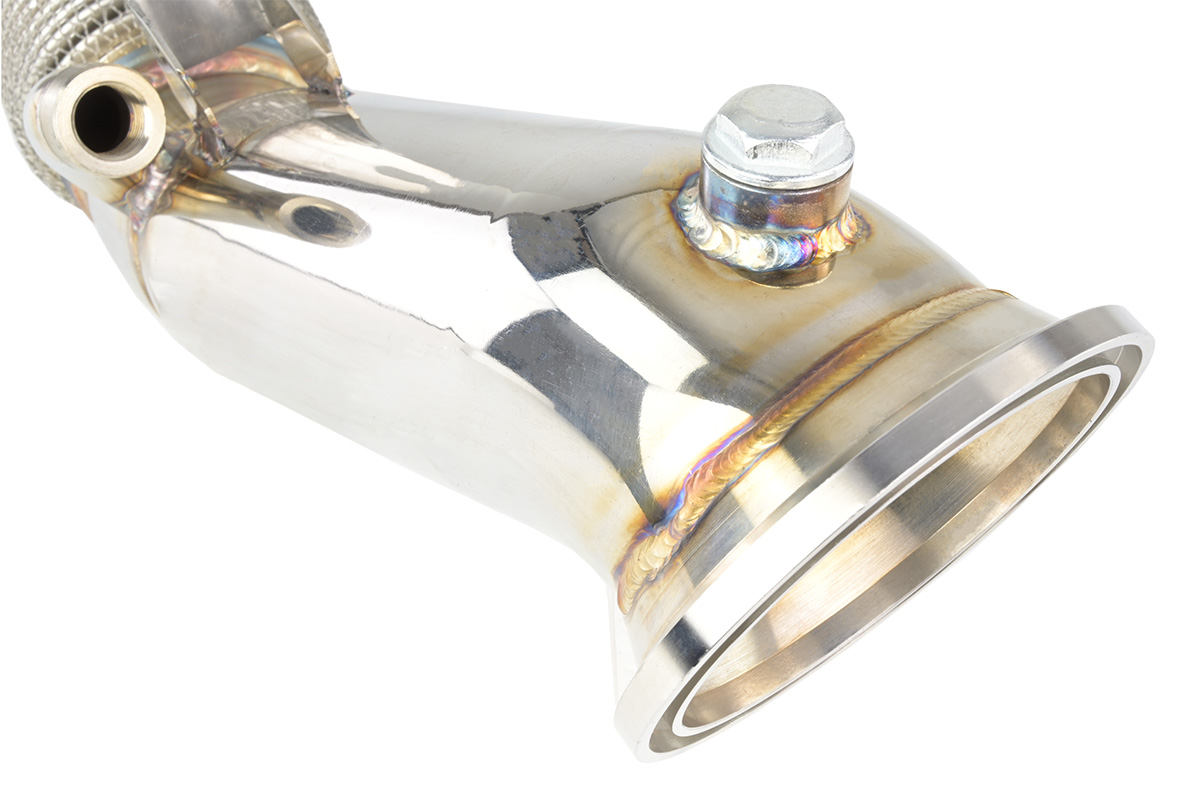 Downpipe FMIC.Pro BMW F20 F21 F22 F23 120i 125i 220i 230i RWD B48 2016-2021 Downpipe to nieodzowny element tuningu każdego samochodu turbodoładowanego. Jego montaż pozwala „odetkać” układ wydechowy, co bezpośrednio przekłada się na poprawę osiągów – szybszą reakcję turbiny, zniwelowanie efektu tzw. turbo dziury oraz zwiększenie mocy i momentu obrotowego, zwłaszcza w niskim i średnim zakresie obrotów. Dodatkowo downpipe nadaje układowi wydechowemu bardziej rasowe brzmienie i poprawia kulturę pracy całego systemu doładowania. Downpipe FMIC.Pro to gwarancja najwyższej jakości i wytrzymałości. Element został wykonany z wysokogatunkowej stali nierdzewnej SS304 o grubości ścianki 1,5 mm, co zapewnia pełną odporność na ekstremalne temperatury oraz korozję. Flansze wycinane w technologii CNC o grubości 10 mm gwarantują idealne spasowanie z turbosprężarką oraz dalszą częścią układu, a spawy wykonane metodą TIG zapewniają solidność i estetykę konstrukcji. Downpipe posiada konstrukcję bez zwężeń na całej długości, co pozwala uzyskać maksymalną przepustowość spalin. - Średnica wejścia: 88,9 mm - Materiał: stal nierdzewna SS304 - Flansze wycinane CNC, grubość 10 mm - Dwa gniazda sondy M18x1,5 - Grubość ścianki: 1,5 mm - Spawany metodą TIG - Konstrukcja bez zwężeń maksymalny przepływ spalin Dedykowany do: BMW F20 F21 120i 125i RWD B48 184, 224 km 2016-2019 BMW F22 F23 220i 230i RWD B48 184, 252 km 2016-2021