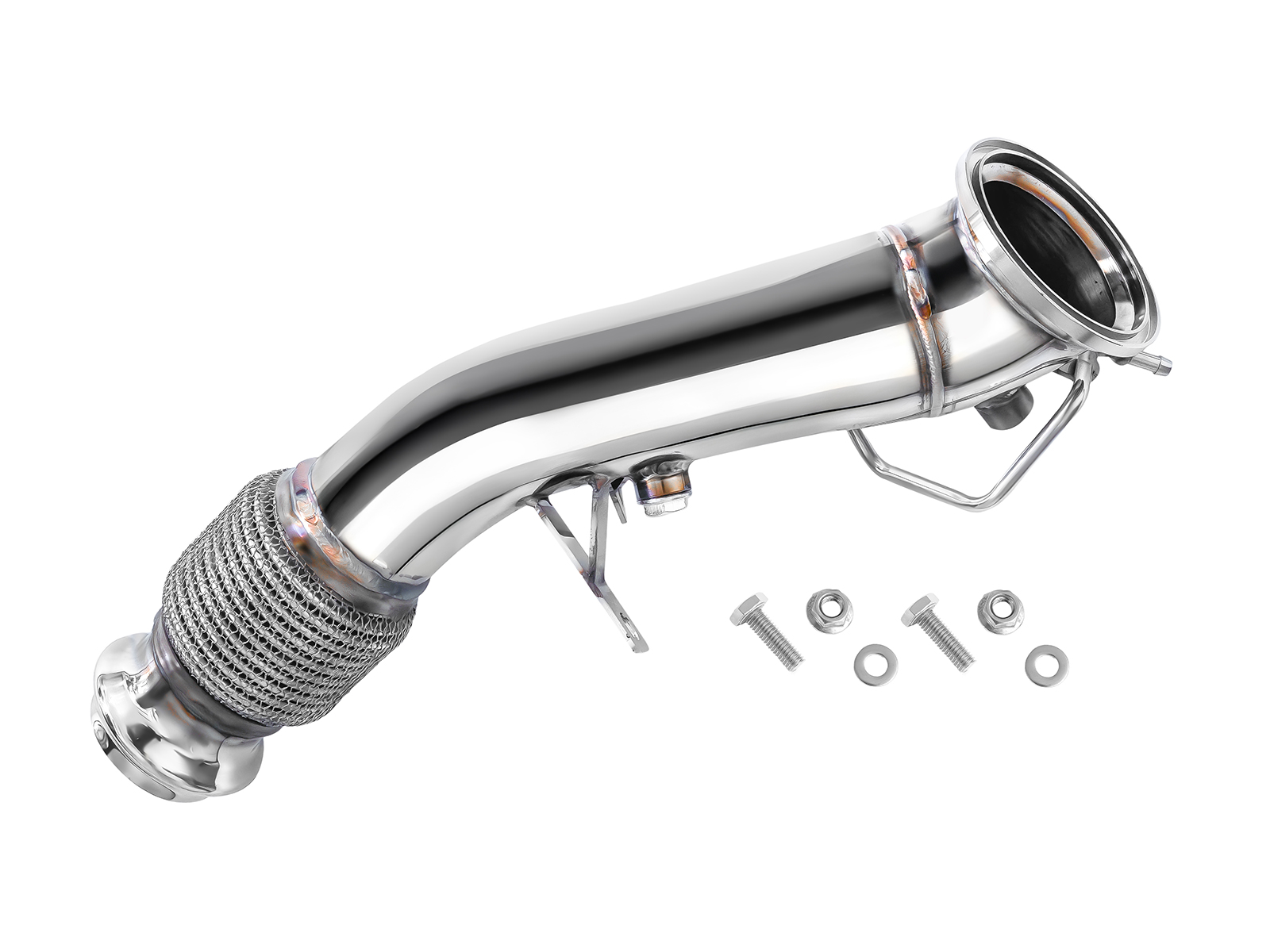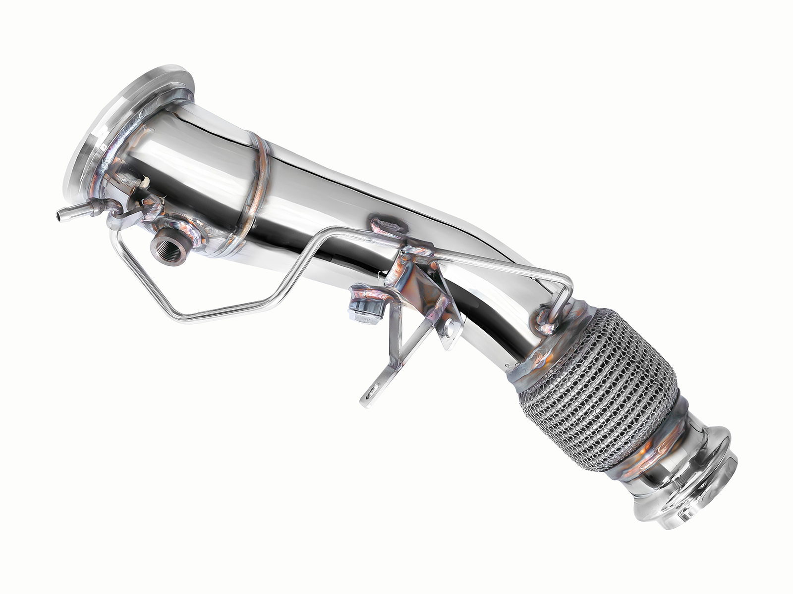Downpipe to nieodzowny element tuningu każdego turbodoładowanego samochodu. Po jego zamontowaniu zostaje odetkany układ wydechowy dzięki czemu odczuwalnie poprawia się "dół" silnika, czyli znika efekt tzw. turbo dziury oraz zwiększa się moc i moment obrotowy. Racing Downpipe Fmic.Pro to nowa jakość i wytrzymałośc elementów układu wydechowego. Nasze DPy wykonane są z wysoko gatunkowej stali kwasoodpornej o grubości ścianki 1,5mm. Każdy składnik produktu wykonany jest starannie w technologii CNC co przekłada się na powtarzalność gotowego elementu . W produkcji DP zostały użyte łączniki elastyczne które posiadają wewnętrzny peszel, który znacznie wzmacnia całą konstrukcje dzięki czemu nie ma mowy o zasysaniu się całości do środka.