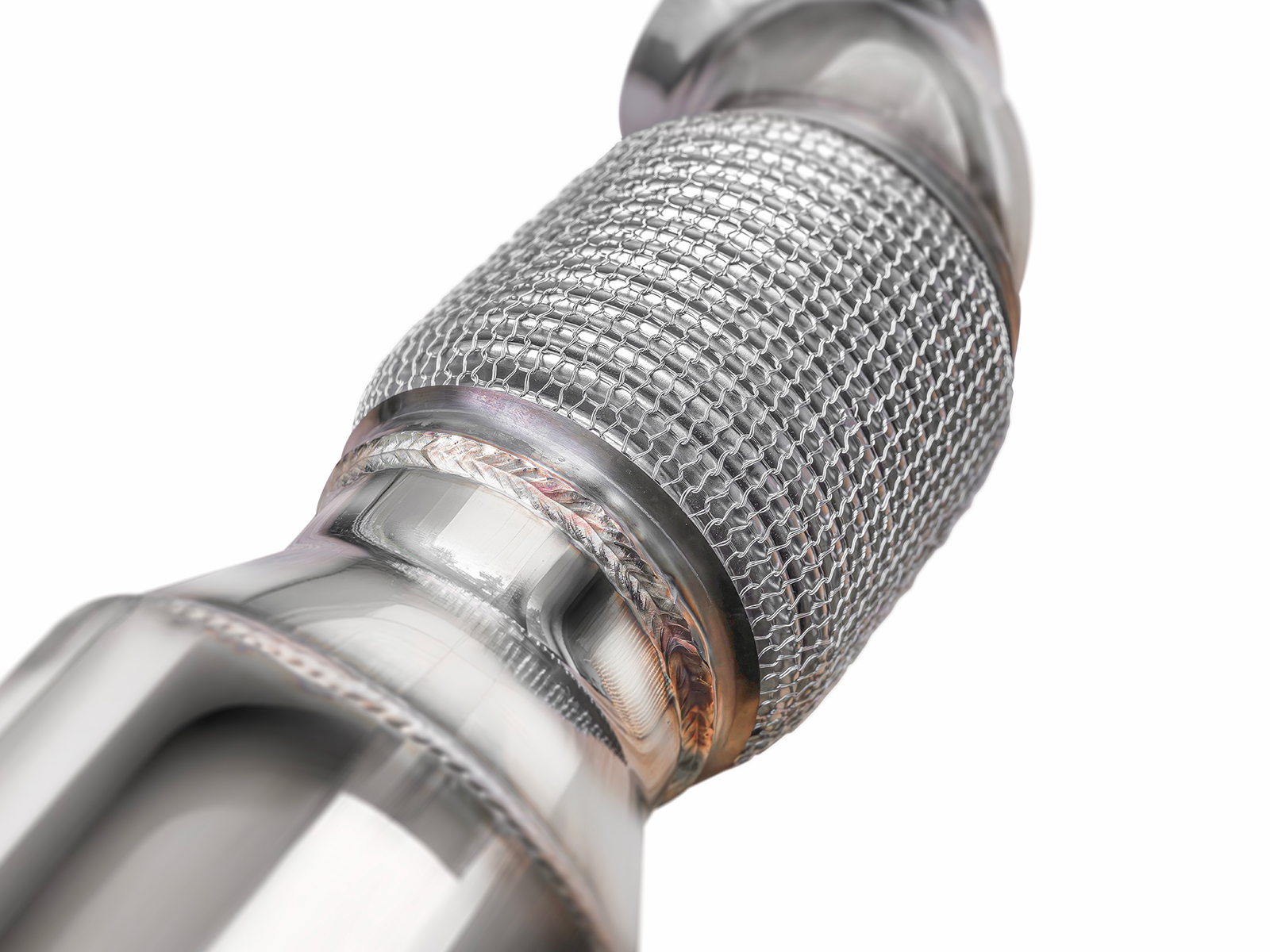 Downpipe to nieodzowny element tuningu każdego turbodoładowanego samochodu. Po jego zamontowaniu zostaje odetkany układ wydechowy dzięki czemu odczuwalnie poprawia się "dół" silnika, czyli znika efekt tzw. turbo dziury oraz zwiększa się moc i moment obrotowy. Racing Downpipe Fmic.Pro to nowa jakość i wytrzymałośc elementów układu wydechowego. Nasze DPy wykonane są z wysoko gatunkowej stali kwasoodpornej o grubości ścianki 1,5mm. Każdy składnik produktu wykonany jest starannie w technologii CNC co przekłada się na powtarzalność gotowego elementu . W produkcji DP zostały użyte łączniki elastyczne które posiadają wewnętrzny peszel, który znacznie wzmacnia całą konstrukcje dzięki czemu nie ma mowy o zasysaniu się całości do środka.
