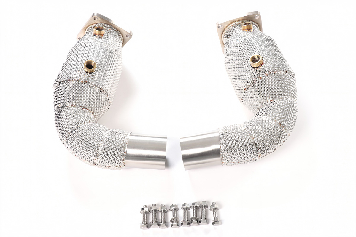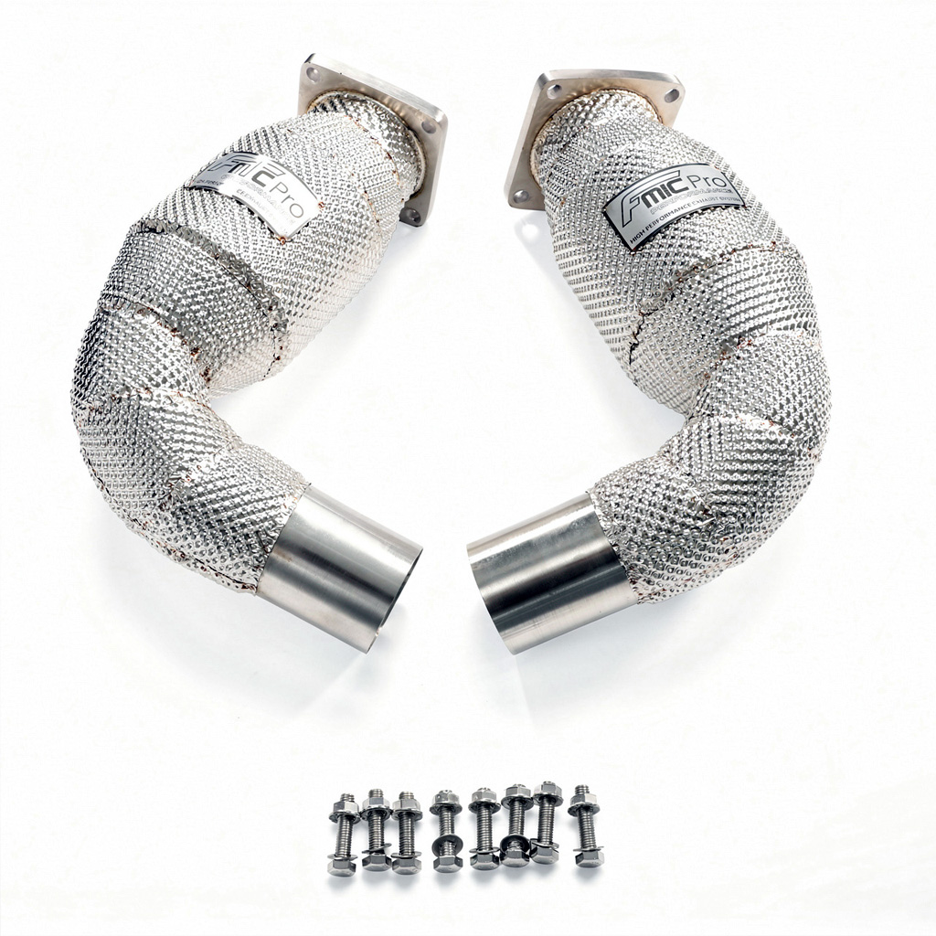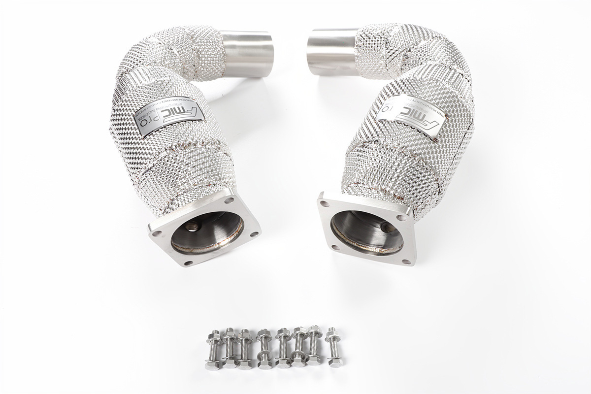 Downpipe FMIC.Pro Porsche 911 991 Turbo S 3.8T 2013-2019 Downpipe to nieodzowny element tuningu każdego samochodu turbodoładowanego. Jego montaż pozwala „odetkać” układ wydechowy, co bezpośrednio przekłada się na poprawę osiągów – szybszą reakcję turbiny, zniwelowanie efektu tzw. turbo dziury oraz zwiększenie mocy i momentu obrotowego, zwłaszcza w niskim i średnim zakresie obrotów. Dodatkowo downpipe nadaje układowi wydechowemu bardziej rasowe brzmienie i poprawia kulturę pracy całego systemu doładowania. Downpipe FMIC.Pro to gwarancja najwyższej jakości i wytrzymałości. Element został wykonany z wysokogatunkowej stali nierdzewnej o grubości ścianki 1,5 mm, co zapewnia pełną odporność na ekstremalne temperatury oraz korozję. Flansze wycinane w technologii CNC o grubości 10 mm gwarantują idealne spasowanie z turbosprężarką oraz dalszą częścią układu, a spawy wykonane metodą TIG zapewniają solidność i estetykę konstrukcji. Osłona termiczna (heat shield) montowana na rurze wydechowej, jej zadaniem jest ograniczenie promieniowania ciepła do komory silnika. Chroni sąsiadujące elementy (wiązki, przewody, plastikowe osłony) przed nadmierną temperaturą. Cechy: - Średnica 4.5” / 114mm - 4x Gniazdo na sondę lambda- Stal SS304 - Osłona termiczna (heat shield) ograniczająca emisję ciepła - Flansze wycinane CNC, grubość 10 mm - Grubość ścianki: 1,5 mm - Spawany metodą TIG -Konstrukcja bez zwężeń, maksymalny przepływ spalin-Niezbędna modyfikacja przy tuningu, zapewnia lepszą efektywność pracy silnika po zwiększeniu mocy. -Poprawiona akustyka, głębszy, bardziej sportowy dźwięk układu wydechowego. -Precyzyjne spawy, gwarancja trwałości i szczelności konstrukcji. Dedykowany do:-Porsche 911 991.1 Turbo / Turbo S (2013–2016)-Porsche 911 991.2 Turbo / Turbo S (2016–2019)