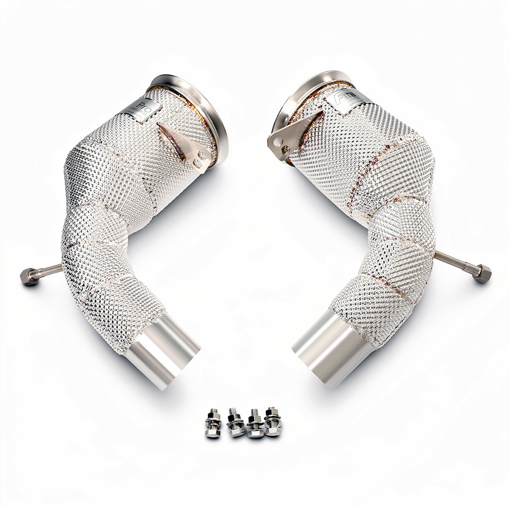 Downpipe FMIC.Pro Porsche 911 992 Carrera Turbo S 3.0T 3.8T 2019- Downpipe to nieodzowny element tuningu każdego samochodu turbodoładowanego. Jego montaż pozwala „odetkać” układ wydechowy, co bezpośrednio przekłada się na poprawę osiągów – szybszą reakcję turbiny, zniwelowanie efektu tzw. turbo dziury oraz zwiększenie mocy i momentu obrotowego, zwłaszcza w niskim i średnim zakresie obrotów. Dodatkowo downpipe nadaje układowi wydechowemu bardziej rasowe brzmienie i poprawia kulturę pracy całego systemu doładowania. Downpipe FMIC.Pro to gwarancja najwyższej jakości i wytrzymałości. Element został wykonany z wysokogatunkowej stali nierdzewnej o grubości ścianki 1,5 mm, co zapewnia pełną odporność na ekstremalne temperatury oraz korozję. Flansze wycinane w technologii CNC o grubości 10 mm gwarantują idealne spasowanie z turbosprężarką oraz dalszą częścią układu, a spawy wykonane metodą TIG zapewniają solidność i estetykę konstrukcji. Osłona termiczna (heat shield) montowana na rurze wydechowej, jej zadaniem jest ograniczenie promieniowania ciepła do komory silnika. Chroni sąsiadujące elementy (wiązki, przewody, plastikowe osłony) przed nadmierną temperaturą. Cechy: - Średnica 5” / 127mm- Stal SS304 - Osłona termiczna (heat shield) ograniczająca emisję ciepła - Flansze wycinane CNC, grubość 10 mm - Grubość ścianki: 1,5 mm - Spawany metodą TIG -Konstrukcja bez zwężeń, maksymalny przepływ spalin-Niezbędna modyfikacja przy tuningu, zapewnia lepszą efektywność pracy silnika po zwiększeniu mocy. -Poprawiona akustyka, głębszy, bardziej sportowy dźwięk układu wydechowego. -Precyzyjne spawy, gwarancja trwałości i szczelności konstrukcji. Dedykowany do: -Porsche 911 992 Carrera 3.0T (2019+) -Porsche 911 992 Turbo S 3.8T (2021+)