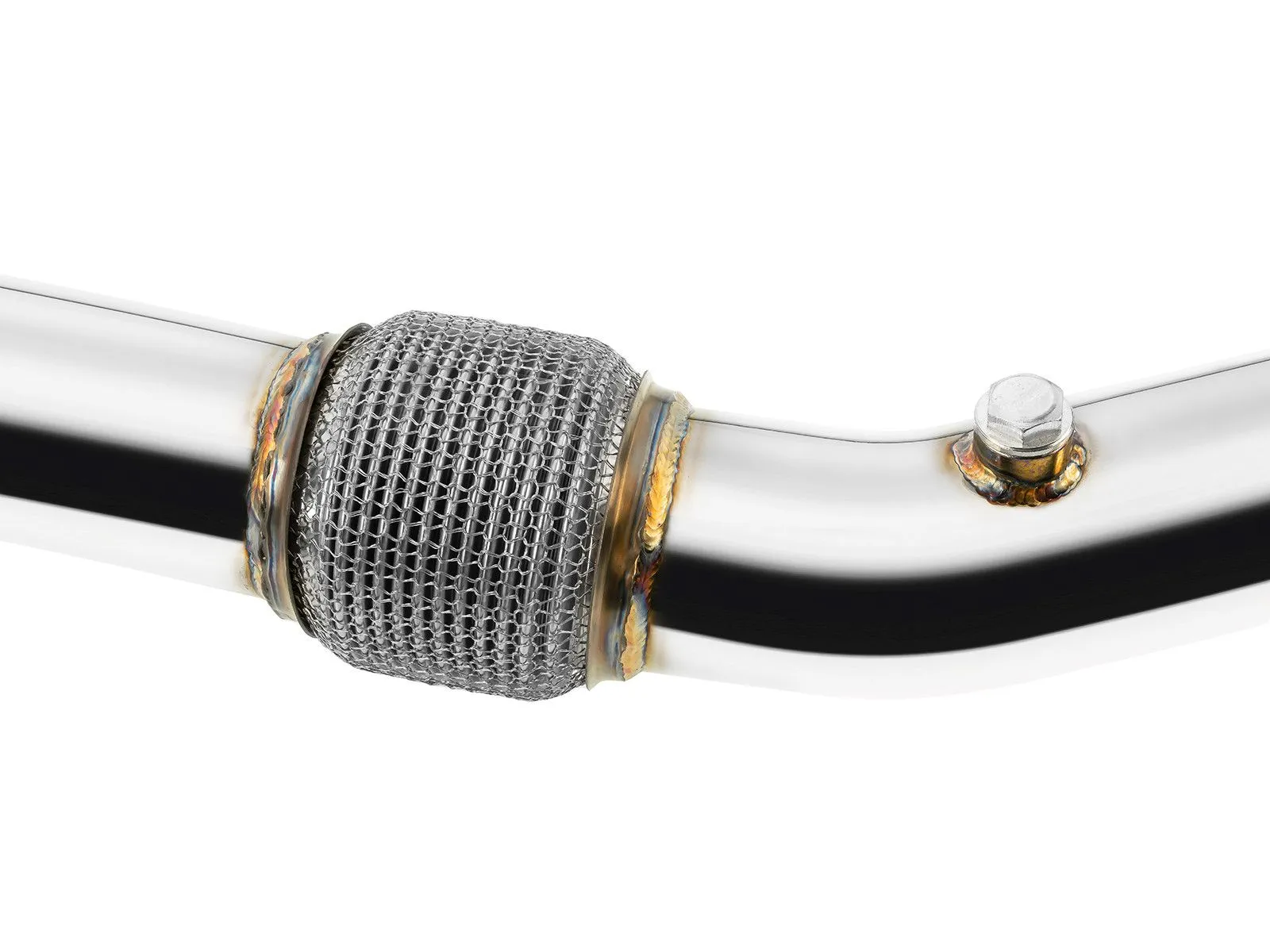 Downpipe to nieodzowny element tuningu każdego turbodoładowanego samochodu. Po jego zamontowaniu zostaje odetkany układ wydechowy dzięki czemu odczuwalnie poprawia się "dół" silnika, czyli znika efekt tzw. turbo dziury oraz zwiększa się moc i moment obrotowy. Racing Downpipe Fmic.Pro to nowa jakość i wytrzymałośc elementów układu wydechowego. Nasze DPy wykonane są z wysoko gatunkowej stali kwasoodpornej o grubości ścianki 1,5mm. Każdy składnik produktu wykonany jest starannie w technologii CNC co przekłada się na powtarzalność gotowego elementu . W produkcji DP zostały użyte łączniki elastyczne które posiadają wewnętrzny peszel, który znacznie wzmacnia całą konstrukcje dzięki czemu nie ma mowy o zasysaniu się całości do środka.