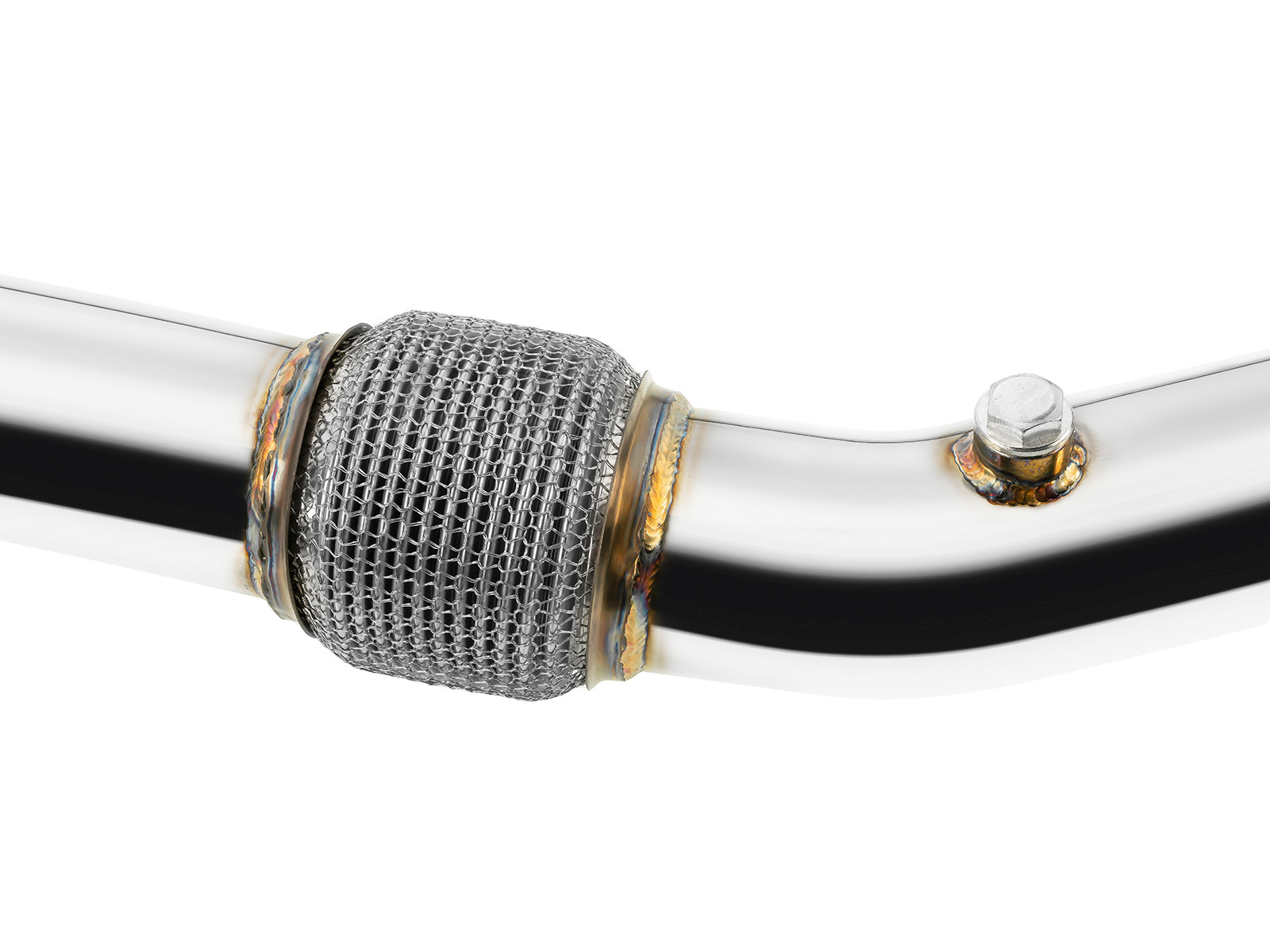 Zastosowanie: VW GOLF IV 1.8T, 1998-2003, 150,180 km FWD Downpipe to nieodzowny element tuningu każdego turbodoładowanego samochodu. Po jego zamontowaniu zostaje odetkany układ wydechowy dzięki czemu odczuwalnie poprawia się "dół" silnika, czyli znika efekt tzw. turbo dziury oraz zwiększa się moc i moment obrotowy. Racing Downpipe Fmic.Pro to nowa jakość i wytrzymałośc elementów układu wydechowego. Nasze DPy wykonane są z wysoko gatunkowej stali kwasoodpornej o grubości ścianki 1,5mm. Każdy składnik produktu wykonany jest starannie w technologii CNC co przekłada się na powtarzalność gotowego elementu . W produkcji DP zostały użyte łączniki elastyczne które posiadają wewnętrzny peszel, który znacznie wzmacnia całą konstrukcje dzięki czemu nie ma mowy o zasysaniu się całości do środka. Średnica zewnętrzna – 76mm Średnica downpipe w miejscu łączenia z rurą środkową - 60mm Grubość flanszy – 10mm Downpipe posiada następujące przyłącza: - dwa gniazda sondy lambda