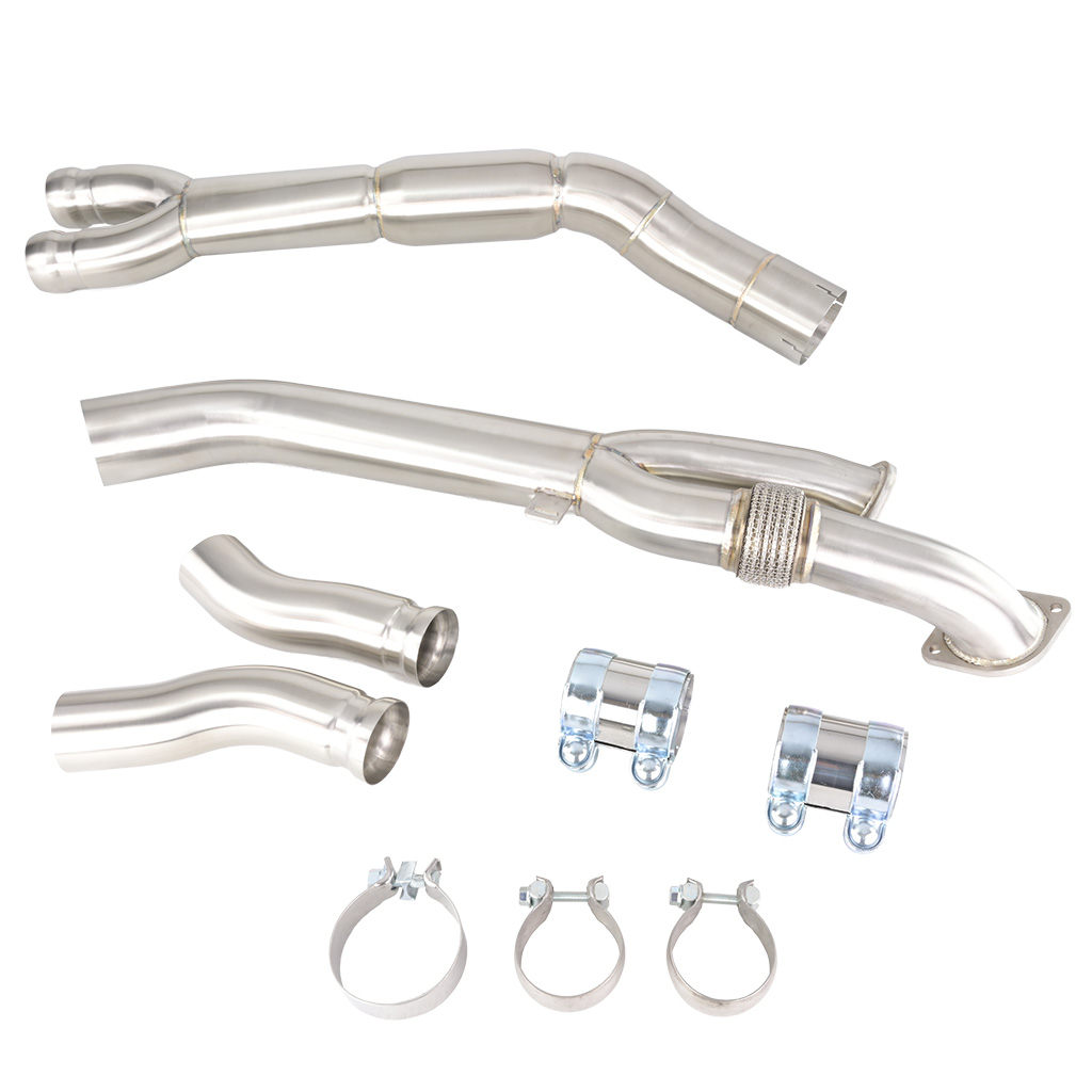 Downpipe Midpipe FMIC.Pro BMW G80 M3 G82 M4 S58 2021+ Middle Pipe FMIC.Pro to nowa jakość i wytrzymałość elementów układu wydechowego. Produkt został wykonany z wysokogatunkowej stali kwasoodpornej ss304 o grubości ścianki 1,5 mm co gwarantuje jego trwałość nawet w najbardziej wymagających warunkach. To istotna modyfikacja dla użytkowników poszukujących poprawy charakterystyki pracy układu wydechowego oraz bardziej zdecydowanego, sportowego brzmienia. Zoptymalizowana konstrukcja pozwala uzyskać czystszy przepływ i lepszą akustykę, eliminując niepożądane zakłócenia i podnosząc ogólną jakość doznań z jazdy. -Łączniki elastyczne z wewnętrznym peszlem – wzmacniają konstrukcję i zapewniają długa eksploatacje -Niezbędna modyfikacja przy tuningu, zapewnia lepszą efektywność pracy silnika po zwiększeniu mocy -Wykonanie ze stali nierdzewnej ss304, wysoka odporność na korozję i temperaturę -Flansze wycinane CNC, precyzyjne dopasowanie i maksymalna szczelność połączeń -Poprawiona akustyka, głębszy, bardziej sportowy dźwięk układu wydechowego -Precyzyjne spawy, gwarancja trwałości i szczelności konstrukcjiDedykowany do BMW generacji G z silnikiem S58 3.0L: -BMW M3 G80 (Sedan), G81 (Touring) 2021+ / 2022+ -BMW M4 G82 (Coupé), G83 (Cabrio) 2021+