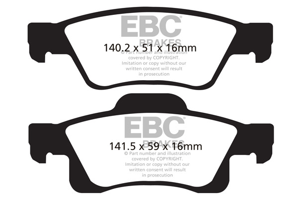 Klocki hamulcowe EBC Ultimax2 zamiennik klocków seryjnych w samochodach drogowych do użytku codziennego, o wysokim współczynnik tarcia. Mieszanka na bazie włókien aramidowych nie zawierająca włókien stalowych, o zminimalizowanym pyleniu, łatwym do usunięcia wodą. Dodatkową zaletą jest mniejsze zużycie tarcz hamulcowych i zminimalizowane ryzyko nierównomiernego zużycia oraz bicia tarcz. -Mieszanka na bazie włókien aramidowych. -Obniżone pylenie. -Wydłużona żywotność -Zakres skuteczności hamowania  do 400° C. -Wyprodukowane w Wielkiej Brytanii -Nie zawiera włókien stalowych. -Homologacja ECE R90. -Maksymalnie zminimalizowane zużycie tarcz hamulcowych. EBC Brakes produkuje największą gamę klocków hamulcowych i tarcz hamulcowych na świecie, oferuje ponad 5000 produktów do większości pojazdów. EBC Brakes posiada dwie specjalistyczne  fabryki w Wielkiej Brytanii i USA. Oferta obejmuje klocki hamulcowe do samochodów osobowych, ciężarowych, motocykli i rowerów, produkuje również specjalistyczne układy hamulcowe do farm wiatrowych, klocki hamulcowe do zastosowań wojskowych, takich jak Humvee i samochody opancerzone. Rodzaje produkowanych klocków hamulcowych obejmują klocki hamulcowe aramidowe, spiekowe, ceramiczne, o wydłużonej żywotności oraz tarcze hamulcowe EBC żeliwne, nierdzewne oraz pływające. Pasuje do: