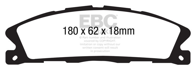 Klocki hamulcowe EBC Ultimax2 zamiennik klocków seryjnych w samochodach drogowych do użytku codziennego, o wysokim współczynnik tarcia. Mieszanka na bazie włókien aramidowych nie zawierająca włókien stalowych, o zminimalizowanym pyleniu, łatwym do usunięcia wodą. Dodatkową zaletą jest mniejsze zużycie tarcz hamulcowych i zminimalizowane ryzyko nierównomiernego zużycia oraz bicia tarcz. -Mieszanka na bazie włókien aramidowych. -Obniżone pylenie. -Wydłużona żywotność -Zakres skuteczności hamowania  do 400° C. -Wyprodukowane w Wielkiej Brytanii -Nie zawiera włókien stalowych. -Homologacja ECE R90. -Maksymalnie zminimalizowane zużycie tarcz hamulcowych. EBC Brakes produkuje największą gamę klocków hamulcowych i tarcz hamulcowych na świecie, oferuje ponad 5000 produktów do większości pojazdów. EBC Brakes posiada dwie specjalistyczne  fabryki w Wielkiej Brytanii i USA. Oferta obejmuje klocki hamulcowe do samochodów osobowych, ciężarowych, motocykli i rowerów, produkuje również specjalistyczne układy hamulcowe do farm wiatrowych, klocki hamulcowe do zastosowań wojskowych, takich jak Humvee i samochody opancerzone. Rodzaje produkowanych klocków hamulcowych obejmują klocki hamulcowe aramidowe, spiekowe, ceramiczne, o wydłużonej żywotności oraz tarcze hamulcowe EBC żeliwne, nierdzewne oraz pływające. Pasuje do: