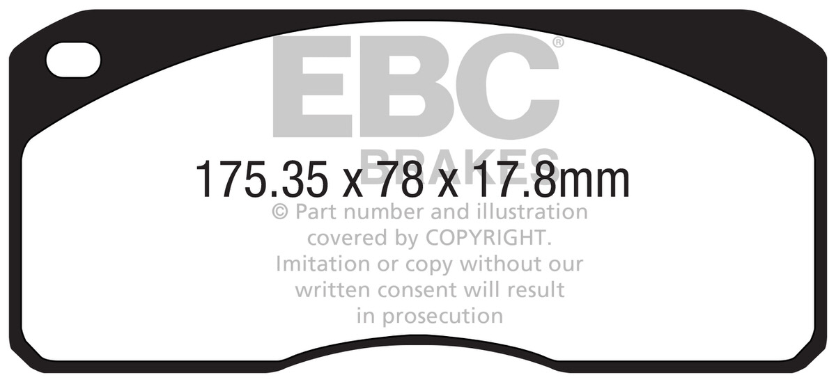 Klocki hamulcowe EBC YellowStuff to nowa ulepszona mieszanka z włóknami aramidowymi o wysokim współczynniku tarcia. Klocki nie wymagają wstępnego rozgrzania, a wraz ze wzrostem temperatury ich skuteczność hamowania wzrasta. Są to najpopularniejsze klocki w ofercie EBC do użytku drogowego oraz okazjonalnego na torach i odcinkach specjalnych w mocnych tuningowanych samochodach. Duża żywotność, zminimalizowane pylenie, odporność na ciągłe agresywne hamowanie to główne zalety EBC YellowStuff.   -Najpopularniejsze klocki EBC. -Wysoka początkowa siła hamowania. -Idealny do dynamicznej jazdy drogowej i użytku torowego. -Wyprodukowane w Wielkiej Brytanii. -Maksymalna temperatura skutecznego hamowania 900°C. -Zmniejszone zanikanie siły hamowania przy wielokrotnym agresywnym hamowaniu. -Homologacja ECE R90.   EBC Brakes produkuje największą gamę klocków hamulcowych i tarcz hamulcowych na świecie, oferuje ponad 5000 produktów do większości pojazdów. EBC Brakes posiada dwie specjalistyczne  fabryki w Wielkiej Brytanii i USA. Oferta obejmuje klocki hamulcowe do samochodów osobowych, ciężarowych, motocykli i rowerów, produkuje również specjalistyczne układy hamulcowe do farm wiatrowych, klocki hamulcowe do zastosowań wojskowych, takich jak Humvee i samochody opancerzone. Rodzaje produkowanych klocków hamulcowych obejmują klocki hamulcowe aramidowe, spiekowe, ceramiczne, o wydłużonej żywotności oraz tarcze hamulcowe EBC żeliwne, nierdzewne oraz pływające.