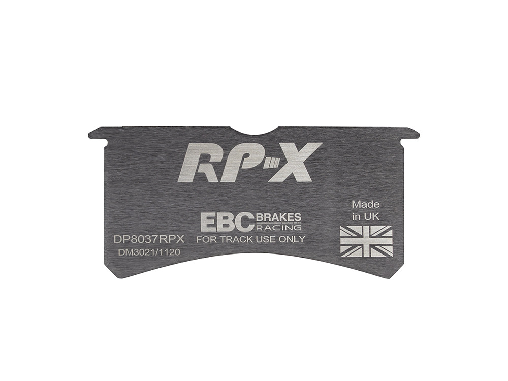 Klocki hamulcowe EBC RP-X, To wyczynowe klocki o bardzo wysokich osiągach, zaprojektowane z myślą o pojazdach sportowych, intensywnie jeżdżących po torze. RP-X posiadaj wyższy poziom tarcia 0,55 i są dedykowane do samochodów z hamulcami działającymi progresywnie, nie posiadających agresywnego wspomagania. Zastosowanie klocków RP-X zapewnia wyższą siłę hamowania i szybszą reakcję, pozwala to zachować optymalny skok pedału hamulca. Zarówno klocki RP-1 i RP-X  to klocki wyczynowe o wysokiej sprawności hamowania oraz odporności na wysokie temperatury. Różnią się współczynnikiem tarcia RP-1 0,45 Mu, RP-X 0,55 Mu  Wyboru należy dokonać na podstawie charakterystyki układu hamulcowego i osobistych preferencji.   -Wykonane z mieszanki materiałów węglowych Kevlar®. -Współczynnik tarcia 0,55. -Zakres temperatur powtarzalnego hamowania w zakresie 100 – 850°C -Maksymalna temperatura skutecznego hamowania 1000°C. -Dłuższa żywotność w warunkach wyścigowych. -Stabilne i powtarzalne hamowanie na każdym okrążeniu. -Osiągi wyścigowe w najwyższych temperaturach wyścigowych. -Rewolucyjny system mocowania podkładek z haczykiem Nucap NRS. -Nie posiadają homologacji drogowej ECE R90.   EBC Brakes produkuje największą gamę klocków hamulcowych i tarcz hamulcowych na świecie, oferuje ponad 5000 produktów do większości pojazdów. EBC Brakes posiada dwie specjalistyczne  fabryki w Wielkiej Brytanii i USA. Oferta obejmuje klocki hamulcowe do samochodów osobowych, ciężarowych, motocykli i rowerów, produkuje również specjalistyczne układy hamulcowe do farm wiatrowych, klocki hamulcowe do zastosowań wojskowych, takich jak Humvee i samochody opancerzone. Rodzaje produkowanych klocków hamulcowych obejmują klocki hamulcowe aramidowe, spiekowe, ceramiczne, o wydłużonej żywotności oraz tarcze hamulcowe EBC żeliwne, nierdzewne oraz pływające. Pasuje do: