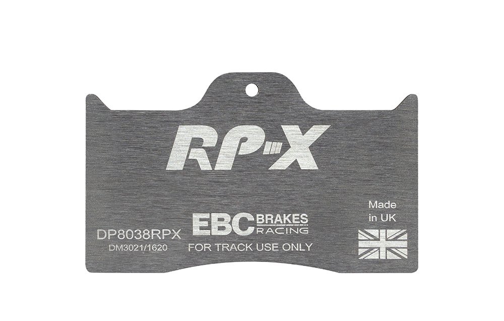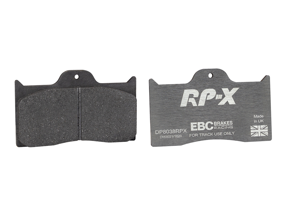 Klocki hamulcowe EBC RP-X, To wyczynowe klocki o bardzo wysokich osiągach, zaprojektowane z myślą o pojazdach sportowych, intensywnie jeżdżących po torze. RP-X posiadaj wyższy poziom tarcia 0,55 i są dedykowane do samochodów z hamulcami działającymi progresywnie, nie posiadających agresywnego wspomagania. Zastosowanie klocków RP-X zapewnia wyższą siłę hamowania i szybszą reakcję, pozwala to zachować optymalny skok pedału hamulca. Zarówno klocki RP-1 i RP-X  to klocki wyczynowe o wysokiej sprawności hamowania oraz odporności na wysokie temperatury. Różnią się współczynnikiem tarcia RP-1 0,45 Mu, RP-X 0,55 Mu  Wyboru należy dokonać na podstawie charakterystyki układu hamulcowego i osobistych preferencji.   -Wykonane z mieszanki materiałów węglowych Kevlar®. -Współczynnik tarcia 0,55. -Zakres temperatur powtarzalnego hamowania w zakresie 100 – 850°C -Maksymalna temperatura skutecznego hamowania 1000°C. -Dłuższa żywotność w warunkach wyścigowych. -Stabilne i powtarzalne hamowanie na każdym okrążeniu. -Osiągi wyścigowe w najwyższych temperaturach wyścigowych. -Rewolucyjny system mocowania podkładek z haczykiem Nucap NRS. -Nie posiadają homologacji drogowej ECE R90.   EBC Brakes produkuje największą gamę klocków hamulcowych i tarcz hamulcowych na świecie, oferuje ponad 5000 produktów do większości pojazdów. EBC Brakes posiada dwie specjalistyczne  fabryki w Wielkiej Brytanii i USA. Oferta obejmuje klocki hamulcowe do samochodów osobowych, ciężarowych, motocykli i rowerów, produkuje również specjalistyczne układy hamulcowe do farm wiatrowych, klocki hamulcowe do zastosowań wojskowych, takich jak Humvee i samochody opancerzone. Rodzaje produkowanych klocków hamulcowych obejmują klocki hamulcowe aramidowe, spiekowe, ceramiczne, o wydłużonej żywotności oraz tarcze hamulcowe EBC żeliwne, nierdzewne oraz pływające. Pasuje do: