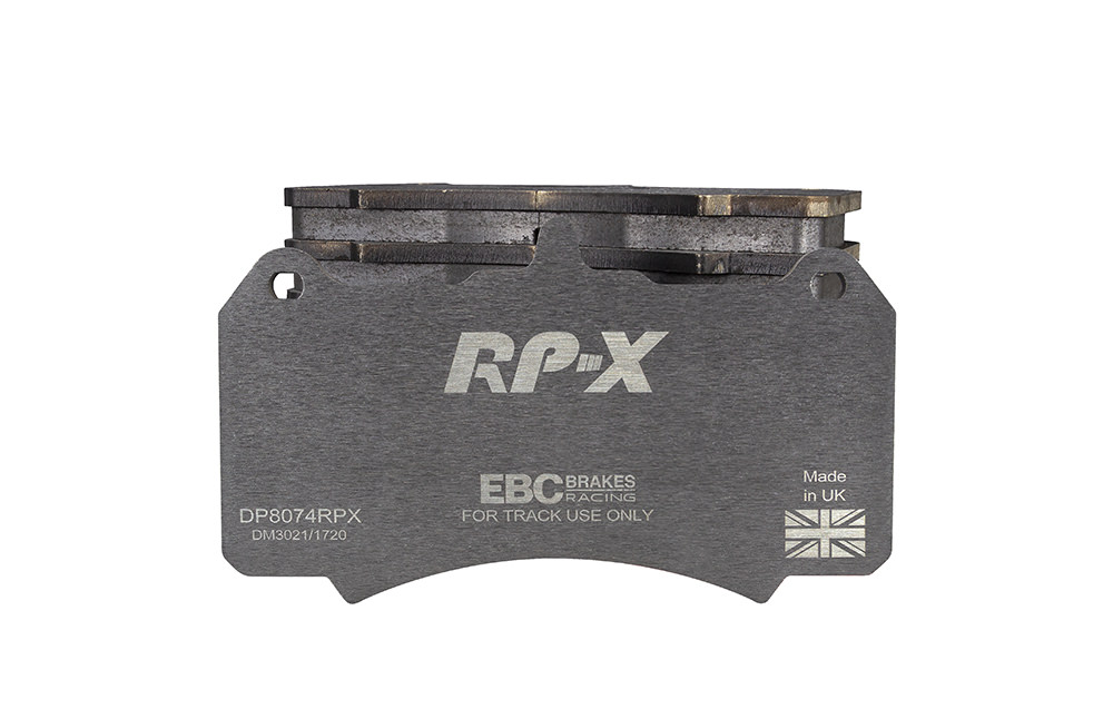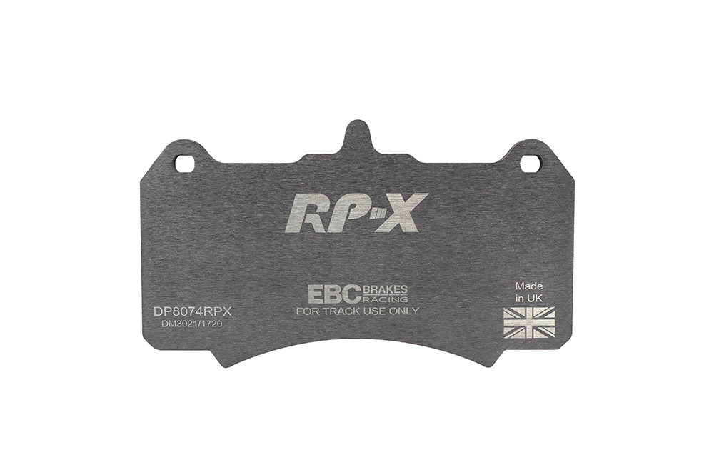 Klocki hamulcowe EBC RP-X, To wyczynowe klocki o bardzo wysokich osiągach, zaprojektowane z myślą o pojazdach sportowych, intensywnie jeżdżących po torze. RP-X posiadaj wyższy poziom tarcia 0,55 i są dedykowane do samochodów z hamulcami działającymi progresywnie, nie posiadających agresywnego wspomagania. Zastosowanie klocków RP-X zapewnia wyższą siłę hamowania i szybszą reakcję, pozwala to zachować optymalny skok pedału hamulca. Zarówno klocki RP-1 i RP-X  to klocki wyczynowe o wysokiej sprawności hamowania oraz odporności na wysokie temperatury. Różnią się współczynnikiem tarcia RP-1 0,45 Mu, RP-X 0,55 Mu  Wyboru należy dokonać na podstawie charakterystyki układu hamulcowego i osobistych preferencji.   -Wykonane z mieszanki materiałów węglowych Kevlar®. -Współczynnik tarcia 0,55. -Zakres temperatur powtarzalnego hamowania w zakresie 100 – 850°C -Maksymalna temperatura skutecznego hamowania 1000°C. -Dłuższa żywotność w warunkach wyścigowych. -Stabilne i powtarzalne hamowanie na każdym okrążeniu. -Osiągi wyścigowe w najwyższych temperaturach wyścigowych. -Rewolucyjny system mocowania podkładek z haczykiem Nucap NRS. -Nie posiadają homologacji drogowej ECE R90.   EBC Brakes produkuje największą gamę klocków hamulcowych i tarcz hamulcowych na świecie, oferuje ponad 5000 produktów do większości pojazdów. EBC Brakes posiada dwie specjalistyczne  fabryki w Wielkiej Brytanii i USA. Oferta obejmuje klocki hamulcowe do samochodów osobowych, ciężarowych, motocykli i rowerów, produkuje również specjalistyczne układy hamulcowe do farm wiatrowych, klocki hamulcowe do zastosowań wojskowych, takich jak Humvee i samochody opancerzone. Rodzaje produkowanych klocków hamulcowych obejmują klocki hamulcowe aramidowe, spiekowe, ceramiczne, o wydłużonej żywotności oraz tarcze hamulcowe EBC żeliwne, nierdzewne oraz pływające. Pasuje do: