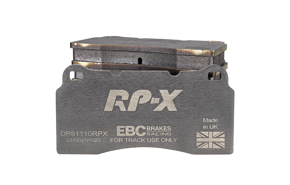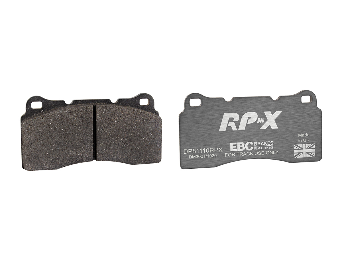 Klocki hamulcowe EBC RP-X, To wyczynowe klocki o bardzo wysokich osiągach, zaprojektowane z myślą o pojazdach sportowych, intensywnie jeżdżących po torze. RP-X posiadaj wyższy poziom tarcia 0,55 i są dedykowane do samochodów z hamulcami działającymi progresywnie, nie posiadających agresywnego wspomagania. Zastosowanie klocków RP-X zapewnia wyższą siłę hamowania i szybszą reakcję, pozwala to zachować optymalny skok pedału hamulca. Zarówno klocki RP-1 i RP-X  to klocki wyczynowe o wysokiej sprawności hamowania oraz odporności na wysokie temperatury. Różnią się współczynnikiem tarcia RP-1 0,45 Mu, RP-X 0,55 Mu  Wyboru należy dokonać na podstawie charakterystyki układu hamulcowego i osobistych preferencji.   -Wykonane z mieszanki materiałów węglowych Kevlar®. -Współczynnik tarcia 0,55. -Zakres temperatur powtarzalnego hamowania w zakresie 100 – 850°C -Maksymalna temperatura skutecznego hamowania 1000°C. -Dłuższa żywotność w warunkach wyścigowych. -Stabilne i powtarzalne hamowanie na każdym okrążeniu. -Osiągi wyścigowe w najwyższych temperaturach wyścigowych. -Rewolucyjny system mocowania podkładek z haczykiem Nucap NRS. -Nie posiadają homologacji drogowej ECE R90.   EBC Brakes produkuje największą gamę klocków hamulcowych i tarcz hamulcowych na świecie, oferuje ponad 5000 produktów do większości pojazdów. EBC Brakes posiada dwie specjalistyczne  fabryki w Wielkiej Brytanii i USA. Oferta obejmuje klocki hamulcowe do samochodów osobowych, ciężarowych, motocykli i rowerów, produkuje również specjalistyczne układy hamulcowe do farm wiatrowych, klocki hamulcowe do zastosowań wojskowych, takich jak Humvee i samochody opancerzone. Rodzaje produkowanych klocków hamulcowych obejmują klocki hamulcowe aramidowe, spiekowe, ceramiczne, o wydłużonej żywotności oraz tarcze hamulcowe EBC żeliwne, nierdzewne oraz pływające. Pasuje do: