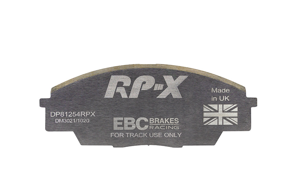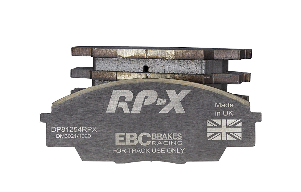 Klocki hamulcowe EBC RP-X, To wyczynowe klocki o bardzo wysokich osiągach, zaprojektowane z myślą o pojazdach sportowych, intensywnie jeżdżących po torze. RP-X posiadaj wyższy poziom tarcia 0,55 i są dedykowane do samochodów z hamulcami działającymi progresywnie, nie posiadających agresywnego wspomagania. Zastosowanie klocków RP-X zapewnia wyższą siłę hamowania i szybszą reakcję, pozwala to zachować optymalny skok pedału hamulca. Zarówno klocki RP-1 i RP-X  to klocki wyczynowe o wysokiej sprawności hamowania oraz odporności na wysokie temperatury. Różnią się współczynnikiem tarcia RP-1 0,45 Mu, RP-X 0,55 Mu  Wyboru należy dokonać na podstawie charakterystyki układu hamulcowego i osobistych preferencji.   -Wykonane z mieszanki materiałów węglowych Kevlar®. -Współczynnik tarcia 0,55. -Zakres temperatur powtarzalnego hamowania w zakresie 100 – 850°C -Maksymalna temperatura skutecznego hamowania 1000°C. -Dłuższa żywotność w warunkach wyścigowych. -Stabilne i powtarzalne hamowanie na każdym okrążeniu. -Osiągi wyścigowe w najwyższych temperaturach wyścigowych. -Rewolucyjny system mocowania podkładek z haczykiem Nucap NRS. -Nie posiadają homologacji drogowej ECE R90.   EBC Brakes produkuje największą gamę klocków hamulcowych i tarcz hamulcowych na świecie, oferuje ponad 5000 produktów do większości pojazdów. EBC Brakes posiada dwie specjalistyczne  fabryki w Wielkiej Brytanii i USA. Oferta obejmuje klocki hamulcowe do samochodów osobowych, ciężarowych, motocykli i rowerów, produkuje również specjalistyczne układy hamulcowe do farm wiatrowych, klocki hamulcowe do zastosowań wojskowych, takich jak Humvee i samochody opancerzone. Rodzaje produkowanych klocków hamulcowych obejmują klocki hamulcowe aramidowe, spiekowe, ceramiczne, o wydłużonej żywotności oraz tarcze hamulcowe EBC żeliwne, nierdzewne oraz pływające. Pasuje do:
