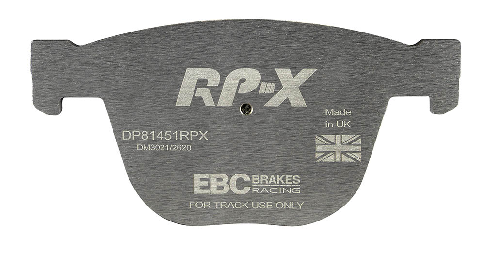 Klocki hamulcowe EBC RP-X, To wyczynowe klocki o bardzo wysokich osiągach, zaprojektowane z myślą o pojazdach sportowych, intensywnie jeżdżących po torze. RP-X posiadaj wyższy poziom tarcia 0,55 i są dedykowane do samochodów z hamulcami działającymi progresywnie, nie posiadających agresywnego wspomagania. Zastosowanie klocków RP-X zapewnia wyższą siłę hamowania i szybszą reakcję, pozwala to zachować optymalny skok pedału hamulca. Zarówno klocki RP-1 i RP-X  to klocki wyczynowe o wysokiej sprawności hamowania oraz odporności na wysokie temperatury. Różnią się współczynnikiem tarcia RP-1 0,45 Mu, RP-X 0,55 Mu  Wyboru należy dokonać na podstawie charakterystyki układu hamulcowego i osobistych preferencji.   -Wykonane z mieszanki materiałów węglowych Kevlar®. -Współczynnik tarcia 0,55. -Zakres temperatur powtarzalnego hamowania w zakresie 100 – 850°C -Maksymalna temperatura skutecznego hamowania 1000°C. -Dłuższa żywotność w warunkach wyścigowych. -Stabilne i powtarzalne hamowanie na każdym okrążeniu. -Osiągi wyścigowe w najwyższych temperaturach wyścigowych. -Rewolucyjny system mocowania podkładek z haczykiem Nucap NRS. -Nie posiadają homologacji drogowej ECE R90.   EBC Brakes produkuje największą gamę klocków hamulcowych i tarcz hamulcowych na świecie, oferuje ponad 5000 produktów do większości pojazdów. EBC Brakes posiada dwie specjalistyczne  fabryki w Wielkiej Brytanii i USA. Oferta obejmuje klocki hamulcowe do samochodów osobowych, ciężarowych, motocykli i rowerów, produkuje również specjalistyczne układy hamulcowe do farm wiatrowych, klocki hamulcowe do zastosowań wojskowych, takich jak Humvee i samochody opancerzone. Rodzaje produkowanych klocków hamulcowych obejmują klocki hamulcowe aramidowe, spiekowe, ceramiczne, o wydłużonej żywotności oraz tarcze hamulcowe EBC żeliwne, nierdzewne oraz pływające. Pasuje do: