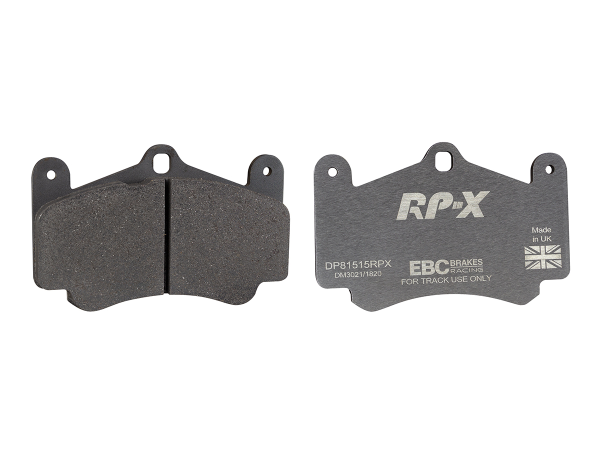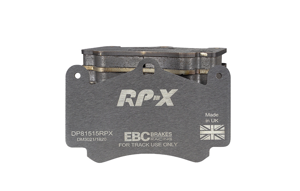 Klocki hamulcowe EBC RP-X, To wyczynowe klocki o bardzo wysokich osiągach, zaprojektowane z myślą o pojazdach sportowych, intensywnie jeżdżących po torze. RP-X posiadaj wyższy poziom tarcia 0,55 i są dedykowane do samochodów z hamulcami działającymi progresywnie, nie posiadających agresywnego wspomagania. Zastosowanie klocków RP-X zapewnia wyższą siłę hamowania i szybszą reakcję, pozwala to zachować optymalny skok pedału hamulca. Zarówno klocki RP-1 i RP-X  to klocki wyczynowe o wysokiej sprawności hamowania oraz odporności na wysokie temperatury. Różnią się współczynnikiem tarcia RP-1 0,45 Mu, RP-X 0,55 Mu  Wyboru należy dokonać na podstawie charakterystyki układu hamulcowego i osobistych preferencji.   -Wykonane z mieszanki materiałów węglowych Kevlar®. -Współczynnik tarcia 0,55. -Zakres temperatur powtarzalnego hamowania w zakresie 100 – 850°C -Maksymalna temperatura skutecznego hamowania 1000°C. -Dłuższa żywotność w warunkach wyścigowych. -Stabilne i powtarzalne hamowanie na każdym okrążeniu. -Osiągi wyścigowe w najwyższych temperaturach wyścigowych. -Rewolucyjny system mocowania podkładek z haczykiem Nucap NRS. -Nie posiadają homologacji drogowej ECE R90.   EBC Brakes produkuje największą gamę klocków hamulcowych i tarcz hamulcowych na świecie, oferuje ponad 5000 produktów do większości pojazdów. EBC Brakes posiada dwie specjalistyczne  fabryki w Wielkiej Brytanii i USA. Oferta obejmuje klocki hamulcowe do samochodów osobowych, ciężarowych, motocykli i rowerów, produkuje również specjalistyczne układy hamulcowe do farm wiatrowych, klocki hamulcowe do zastosowań wojskowych, takich jak Humvee i samochody opancerzone. Rodzaje produkowanych klocków hamulcowych obejmują klocki hamulcowe aramidowe, spiekowe, ceramiczne, o wydłużonej żywotności oraz tarcze hamulcowe EBC żeliwne, nierdzewne oraz pływające. Pasuje do:
