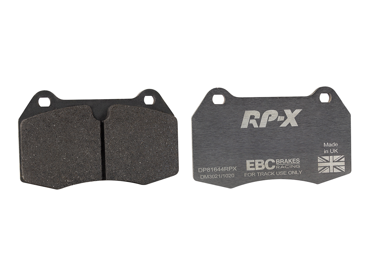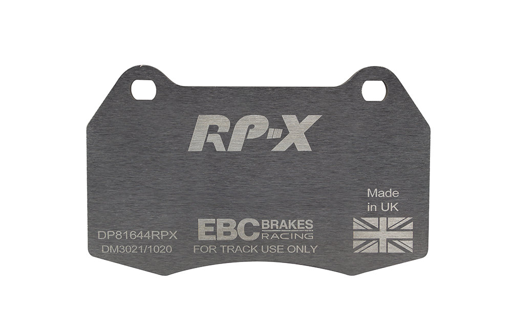 Klocki hamulcowe EBC RP-X, To wyczynowe klocki o bardzo wysokich osiągach, zaprojektowane z myślą o pojazdach sportowych, intensywnie jeżdżących po torze. RP-X posiadaj wyższy poziom tarcia 0,55 i są dedykowane do samochodów z hamulcami działającymi progresywnie, nie posiadających agresywnego wspomagania. Zastosowanie klocków RP-X zapewnia wyższą siłę hamowania i szybszą reakcję, pozwala to zachować optymalny skok pedału hamulca. Zarówno klocki RP-1 i RP-X  to klocki wyczynowe o wysokiej sprawności hamowania oraz odporności na wysokie temperatury. Różnią się współczynnikiem tarcia RP-1 0,45 Mu, RP-X 0,55 Mu  Wyboru należy dokonać na podstawie charakterystyki układu hamulcowego i osobistych preferencji.   -Wykonane z mieszanki materiałów węglowych Kevlar®. -Współczynnik tarcia 0,55. -Zakres temperatur powtarzalnego hamowania w zakresie 100 – 850°C -Maksymalna temperatura skutecznego hamowania 1000°C. -Dłuższa żywotność w warunkach wyścigowych. -Stabilne i powtarzalne hamowanie na każdym okrążeniu. -Osiągi wyścigowe w najwyższych temperaturach wyścigowych. -Rewolucyjny system mocowania podkładek z haczykiem Nucap NRS. -Nie posiadają homologacji drogowej ECE R90.   EBC Brakes produkuje największą gamę klocków hamulcowych i tarcz hamulcowych na świecie, oferuje ponad 5000 produktów do większości pojazdów. EBC Brakes posiada dwie specjalistyczne  fabryki w Wielkiej Brytanii i USA. Oferta obejmuje klocki hamulcowe do samochodów osobowych, ciężarowych, motocykli i rowerów, produkuje również specjalistyczne układy hamulcowe do farm wiatrowych, klocki hamulcowe do zastosowań wojskowych, takich jak Humvee i samochody opancerzone. Rodzaje produkowanych klocków hamulcowych obejmują klocki hamulcowe aramidowe, spiekowe, ceramiczne, o wydłużonej żywotności oraz tarcze hamulcowe EBC żeliwne, nierdzewne oraz pływające. Pasuje do: