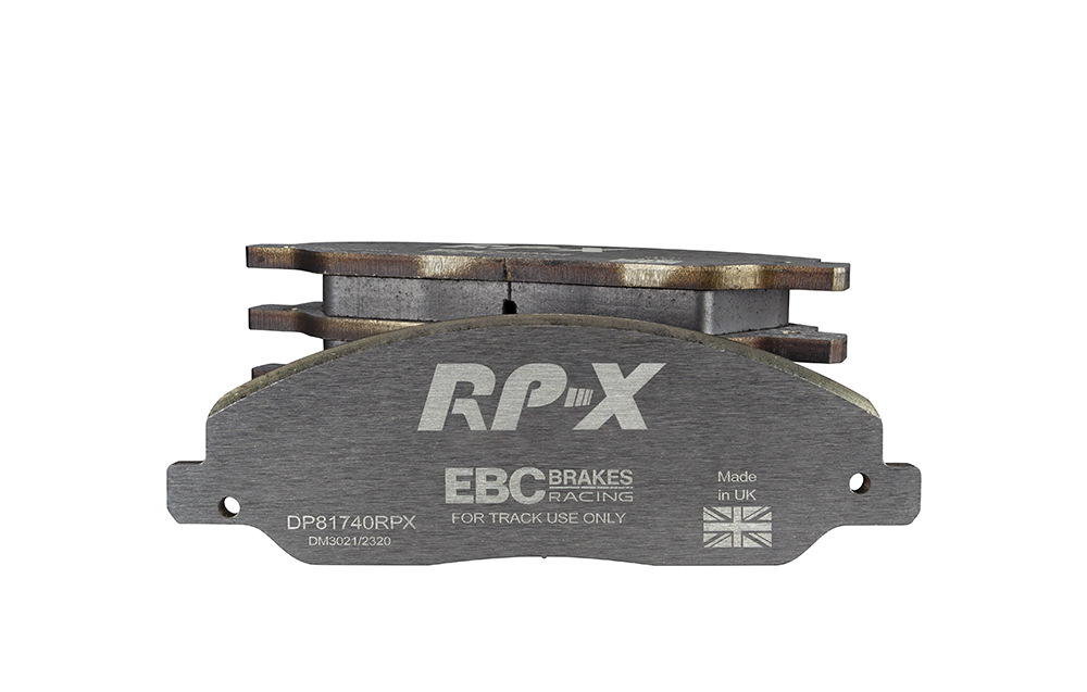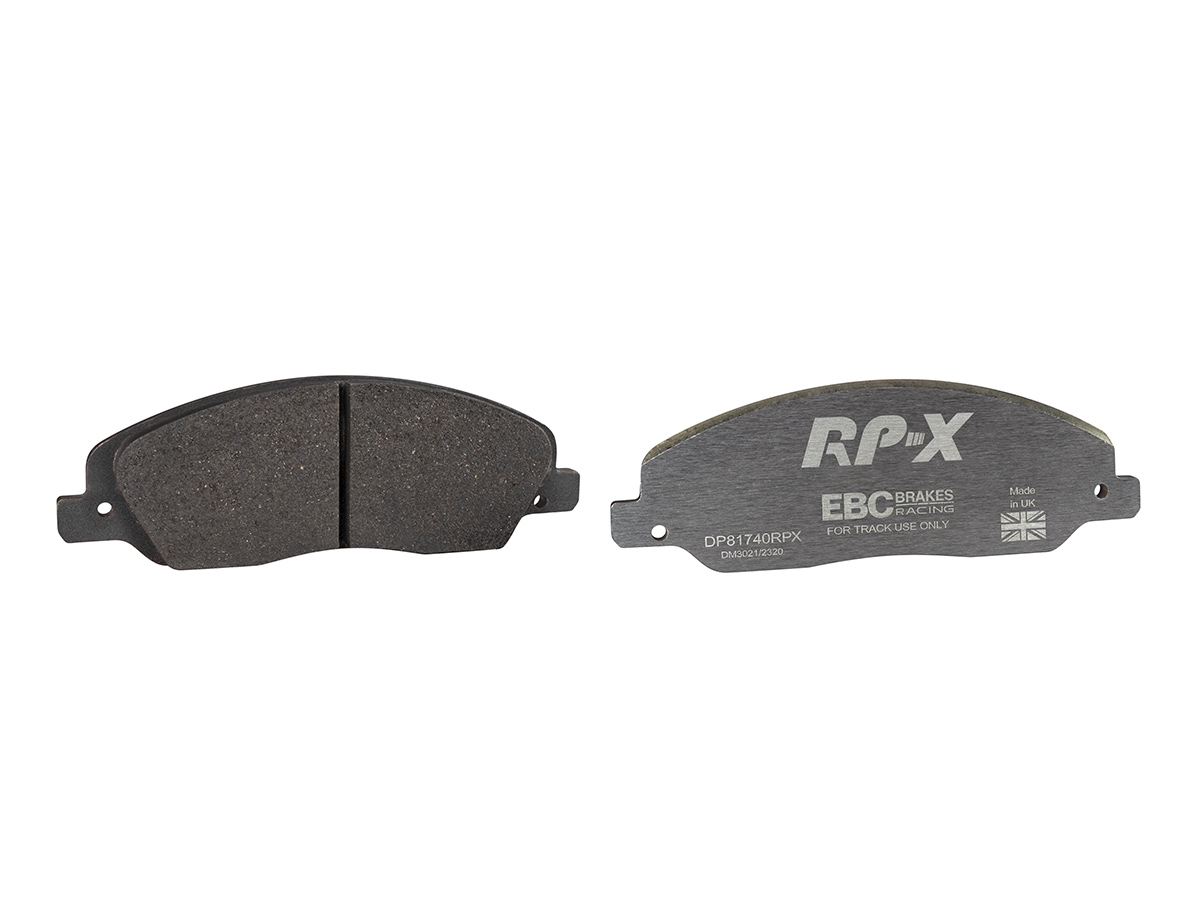 Klocki hamulcowe EBC RP-X, To wyczynowe klocki o bardzo wysokich osiągach, zaprojektowane z myślą o pojazdach sportowych, intensywnie jeżdżących po torze. RP-X posiadaj wyższy poziom tarcia 0,55 i są dedykowane do samochodów z hamulcami działającymi progresywnie, nie posiadających agresywnego wspomagania. Zastosowanie klocków RP-X zapewnia wyższą siłę hamowania i szybszą reakcję, pozwala to zachować optymalny skok pedału hamulca. Zarówno klocki RP-1 i RP-X  to klocki wyczynowe o wysokiej sprawności hamowania oraz odporności na wysokie temperatury. Różnią się współczynnikiem tarcia RP-1 0,45 Mu, RP-X 0,55 Mu  Wyboru należy dokonać na podstawie charakterystyki układu hamulcowego i osobistych preferencji.   -Wykonane z mieszanki materiałów węglowych Kevlar®. -Współczynnik tarcia 0,55. -Zakres temperatur powtarzalnego hamowania w zakresie 100 – 850°C -Maksymalna temperatura skutecznego hamowania 1000°C. -Dłuższa żywotność w warunkach wyścigowych. -Stabilne i powtarzalne hamowanie na każdym okrążeniu. -Osiągi wyścigowe w najwyższych temperaturach wyścigowych. -Rewolucyjny system mocowania podkładek z haczykiem Nucap NRS. -Nie posiadają homologacji drogowej ECE R90.   EBC Brakes produkuje największą gamę klocków hamulcowych i tarcz hamulcowych na świecie, oferuje ponad 5000 produktów do większości pojazdów. EBC Brakes posiada dwie specjalistyczne  fabryki w Wielkiej Brytanii i USA. Oferta obejmuje klocki hamulcowe do samochodów osobowych, ciężarowych, motocykli i rowerów, produkuje również specjalistyczne układy hamulcowe do farm wiatrowych, klocki hamulcowe do zastosowań wojskowych, takich jak Humvee i samochody opancerzone. Rodzaje produkowanych klocków hamulcowych obejmują klocki hamulcowe aramidowe, spiekowe, ceramiczne, o wydłużonej żywotności oraz tarcze hamulcowe EBC żeliwne, nierdzewne oraz pływające. Pasuje do: