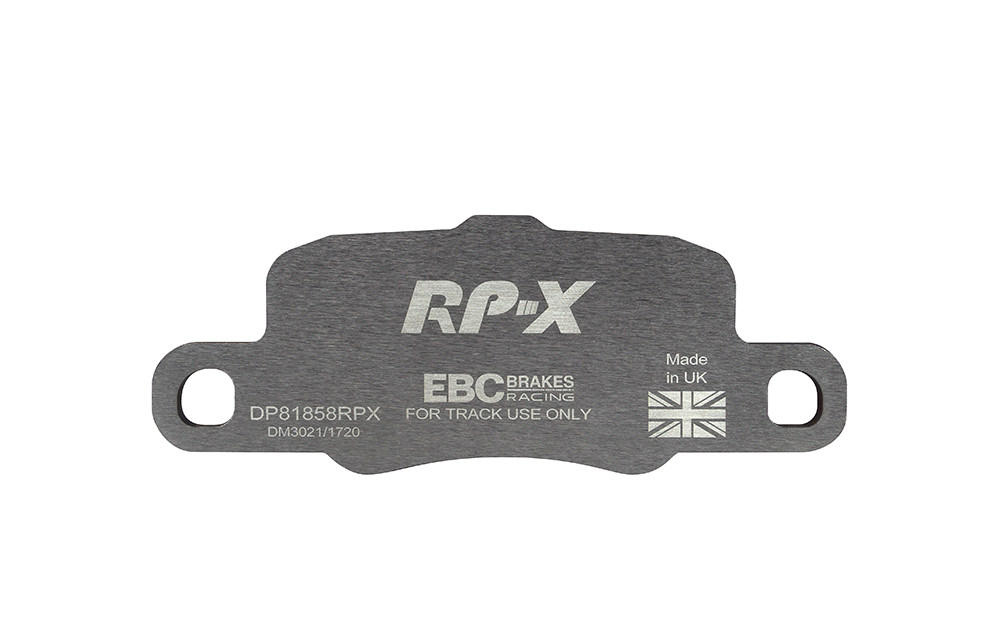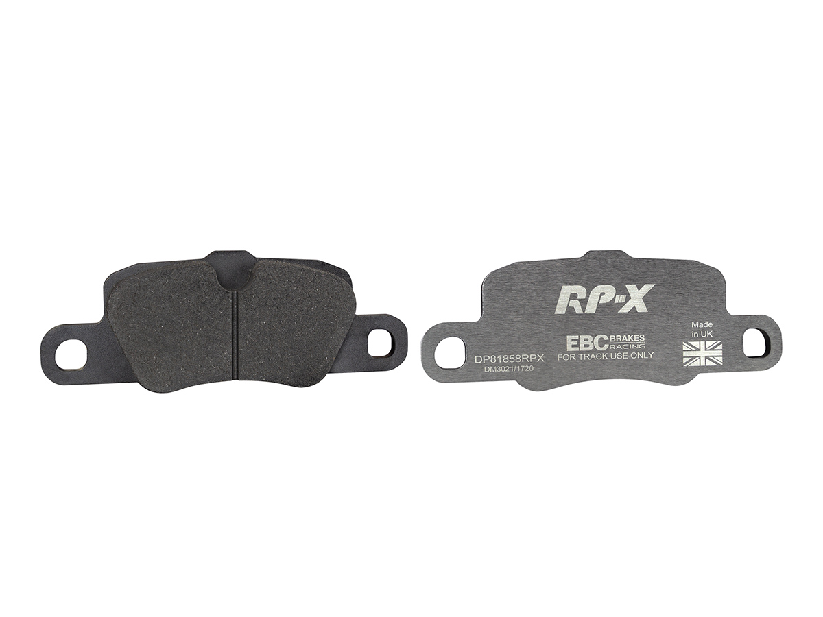 Klocki hamulcowe EBC RP-X, To wyczynowe klocki o bardzo wysokich osiągach, zaprojektowane z myślą o pojazdach sportowych, intensywnie jeżdżących po torze. RP-X posiadaj wyższy poziom tarcia 0,55 i są dedykowane do samochodów z hamulcami działającymi progresywnie, nie posiadających agresywnego wspomagania. Zastosowanie klocków RP-X zapewnia wyższą siłę hamowania i szybszą reakcję, pozwala to zachować optymalny skok pedału hamulca. Zarówno klocki RP-1 i RP-X  to klocki wyczynowe o wysokiej sprawności hamowania oraz odporności na wysokie temperatury. Różnią się współczynnikiem tarcia RP-1 0,45 Mu, RP-X 0,55 Mu  Wyboru należy dokonać na podstawie charakterystyki układu hamulcowego i osobistych preferencji.   -Wykonane z mieszanki materiałów węglowych Kevlar®. -Współczynnik tarcia 0,55. -Zakres temperatur powtarzalnego hamowania w zakresie 100 – 850°C -Maksymalna temperatura skutecznego hamowania 1000°C. -Dłuższa żywotność w warunkach wyścigowych. -Stabilne i powtarzalne hamowanie na każdym okrążeniu. -Osiągi wyścigowe w najwyższych temperaturach wyścigowych. -Rewolucyjny system mocowania podkładek z haczykiem Nucap NRS. -Nie posiadają homologacji drogowej ECE R90.   EBC Brakes produkuje największą gamę klocków hamulcowych i tarcz hamulcowych na świecie, oferuje ponad 5000 produktów do większości pojazdów. EBC Brakes posiada dwie specjalistyczne  fabryki w Wielkiej Brytanii i USA. Oferta obejmuje klocki hamulcowe do samochodów osobowych, ciężarowych, motocykli i rowerów, produkuje również specjalistyczne układy hamulcowe do farm wiatrowych, klocki hamulcowe do zastosowań wojskowych, takich jak Humvee i samochody opancerzone. Rodzaje produkowanych klocków hamulcowych obejmują klocki hamulcowe aramidowe, spiekowe, ceramiczne, o wydłużonej żywotności oraz tarcze hamulcowe EBC żeliwne, nierdzewne oraz pływające. Pasuje do: