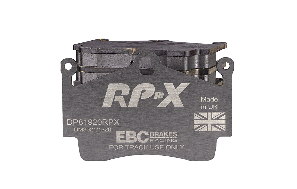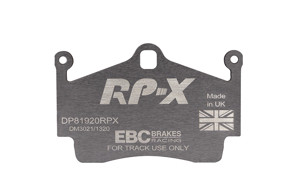 Klocki hamulcowe EBC RP-X, To wyczynowe klocki o bardzo wysokich osiągach, zaprojektowane z myślą o pojazdach sportowych, intensywnie jeżdżących po torze. RP-X posiadaj wyższy poziom tarcia 0,55 i są dedykowane do samochodów z hamulcami działającymi progresywnie, nie posiadających agresywnego wspomagania. Zastosowanie klocków RP-X zapewnia wyższą siłę hamowania i szybszą reakcję, pozwala to zachować optymalny skok pedału hamulca. Zarówno klocki RP-1 i RP-X  to klocki wyczynowe o wysokiej sprawności hamowania oraz odporności na wysokie temperatury. Różnią się współczynnikiem tarcia RP-1 0,45 Mu, RP-X 0,55 Mu  Wyboru należy dokonać na podstawie charakterystyki układu hamulcowego i osobistych preferencji.   -Wykonane z mieszanki materiałów węglowych Kevlar®. -Współczynnik tarcia 0,55. -Zakres temperatur powtarzalnego hamowania w zakresie 100 – 850°C -Maksymalna temperatura skutecznego hamowania 1000°C. -Dłuższa żywotność w warunkach wyścigowych. -Stabilne i powtarzalne hamowanie na każdym okrążeniu. -Osiągi wyścigowe w najwyższych temperaturach wyścigowych. -Rewolucyjny system mocowania podkładek z haczykiem Nucap NRS. -Nie posiadają homologacji drogowej ECE R90.   EBC Brakes produkuje największą gamę klocków hamulcowych i tarcz hamulcowych na świecie, oferuje ponad 5000 produktów do większości pojazdów. EBC Brakes posiada dwie specjalistyczne  fabryki w Wielkiej Brytanii i USA. Oferta obejmuje klocki hamulcowe do samochodów osobowych, ciężarowych, motocykli i rowerów, produkuje również specjalistyczne układy hamulcowe do farm wiatrowych, klocki hamulcowe do zastosowań wojskowych, takich jak Humvee i samochody opancerzone. Rodzaje produkowanych klocków hamulcowych obejmują klocki hamulcowe aramidowe, spiekowe, ceramiczne, o wydłużonej żywotności oraz tarcze hamulcowe EBC żeliwne, nierdzewne oraz pływające. Pasuje do: