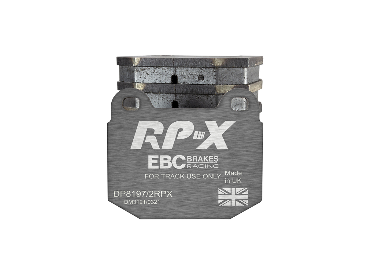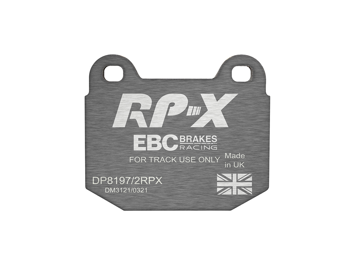 Klocki hamulcowe EBC RP-X, To wyczynowe klocki o bardzo wysokich osiągach, zaprojektowane z myślą o pojazdach sportowych, intensywnie jeżdżących po torze. RP-X posiadaj wyższy poziom tarcia 0,55 i są dedykowane do samochodów z hamulcami działającymi progresywnie, nie posiadających agresywnego wspomagania. Zastosowanie klocków RP-X zapewnia wyższą siłę hamowania i szybszą reakcję, pozwala to zachować optymalny skok pedału hamulca. Zarówno klocki RP-1 i RP-X  to klocki wyczynowe o wysokiej sprawności hamowania oraz odporności na wysokie temperatury. Różnią się współczynnikiem tarcia RP-1 0,45 Mu, RP-X 0,55 Mu  Wyboru należy dokonać na podstawie charakterystyki układu hamulcowego i osobistych preferencji.   -Wykonane z mieszanki materiałów węglowych Kevlar®. -Współczynnik tarcia 0,55. -Zakres temperatur powtarzalnego hamowania w zakresie 100 – 850°C -Maksymalna temperatura skutecznego hamowania 1000°C. -Dłuższa żywotność w warunkach wyścigowych. -Stabilne i powtarzalne hamowanie na każdym okrążeniu. -Osiągi wyścigowe w najwyższych temperaturach wyścigowych. -Rewolucyjny system mocowania podkładek z haczykiem Nucap NRS. -Nie posiadają homologacji drogowej ECE R90.   EBC Brakes produkuje największą gamę klocków hamulcowych i tarcz hamulcowych na świecie, oferuje ponad 5000 produktów do większości pojazdów. EBC Brakes posiada dwie specjalistyczne  fabryki w Wielkiej Brytanii i USA. Oferta obejmuje klocki hamulcowe do samochodów osobowych, ciężarowych, motocykli i rowerów, produkuje również specjalistyczne układy hamulcowe do farm wiatrowych, klocki hamulcowe do zastosowań wojskowych, takich jak Humvee i samochody opancerzone. Rodzaje produkowanych klocków hamulcowych obejmują klocki hamulcowe aramidowe, spiekowe, ceramiczne, o wydłużonej żywotności oraz tarcze hamulcowe EBC żeliwne, nierdzewne oraz pływające. Pasuje do:
