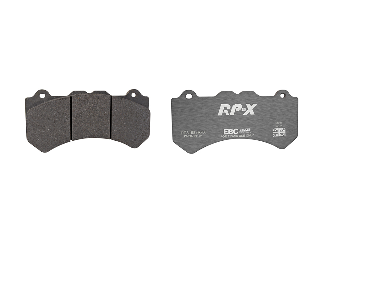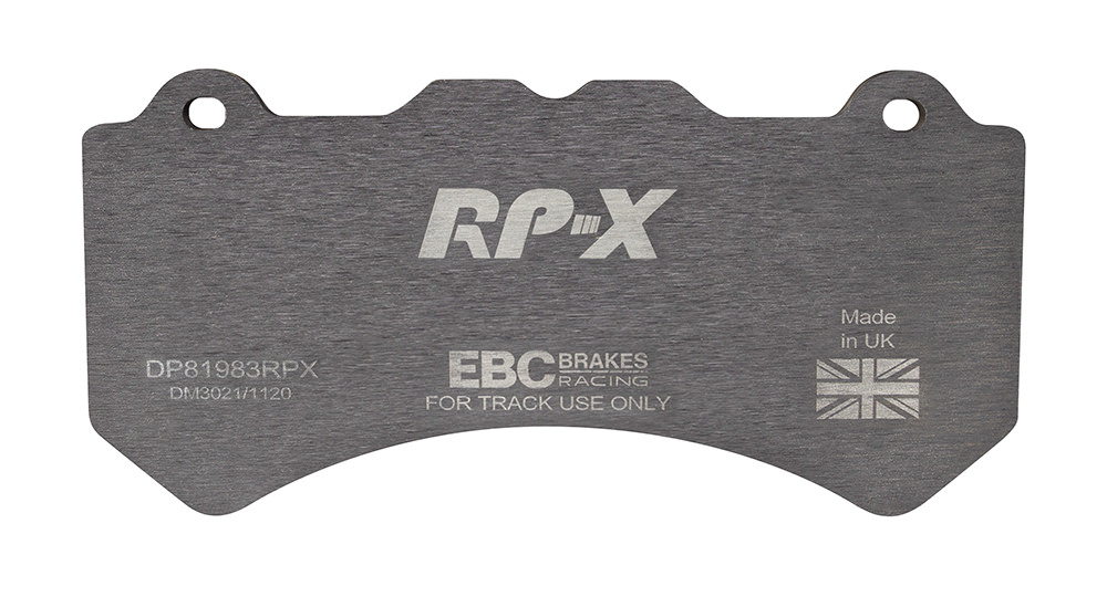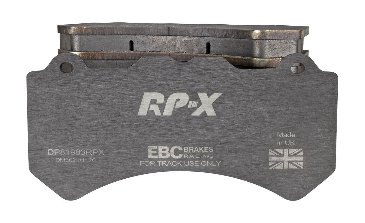 Klocki hamulcowe EBC RP-X, To wyczynowe klocki o bardzo wysokich osiągach, zaprojektowane z myślą o pojazdach sportowych, intensywnie jeżdżących po torze. RP-X posiadaj wyższy poziom tarcia 0,55 i są dedykowane do samochodów z hamulcami działającymi progresywnie, nie posiadających agresywnego wspomagania. Zastosowanie klocków RP-X zapewnia wyższą siłę hamowania i szybszą reakcję, pozwala to zachować optymalny skok pedału hamulca. Zarówno klocki RP-1 i RP-X  to klocki wyczynowe o wysokiej sprawności hamowania oraz odporności na wysokie temperatury. Różnią się współczynnikiem tarcia RP-1 0,45 Mu, RP-X 0,55 Mu  Wyboru należy dokonać na podstawie charakterystyki układu hamulcowego i osobistych preferencji.   -Wykonane z mieszanki materiałów węglowych Kevlar®. -Współczynnik tarcia 0,55. -Zakres temperatur powtarzalnego hamowania w zakresie 100 – 850°C -Maksymalna temperatura skutecznego hamowania 1000°C. -Dłuższa żywotność w warunkach wyścigowych. -Stabilne i powtarzalne hamowanie na każdym okrążeniu. -Osiągi wyścigowe w najwyższych temperaturach wyścigowych. -Rewolucyjny system mocowania podkładek z haczykiem Nucap NRS. -Nie posiadają homologacji drogowej ECE R90.   EBC Brakes produkuje największą gamę klocków hamulcowych i tarcz hamulcowych na świecie, oferuje ponad 5000 produktów do większości pojazdów. EBC Brakes posiada dwie specjalistyczne  fabryki w Wielkiej Brytanii i USA. Oferta obejmuje klocki hamulcowe do samochodów osobowych, ciężarowych, motocykli i rowerów, produkuje również specjalistyczne układy hamulcowe do farm wiatrowych, klocki hamulcowe do zastosowań wojskowych, takich jak Humvee i samochody opancerzone. Rodzaje produkowanych klocków hamulcowych obejmują klocki hamulcowe aramidowe, spiekowe, ceramiczne, o wydłużonej żywotności oraz tarcze hamulcowe EBC żeliwne, nierdzewne oraz pływające. Pasuje do: