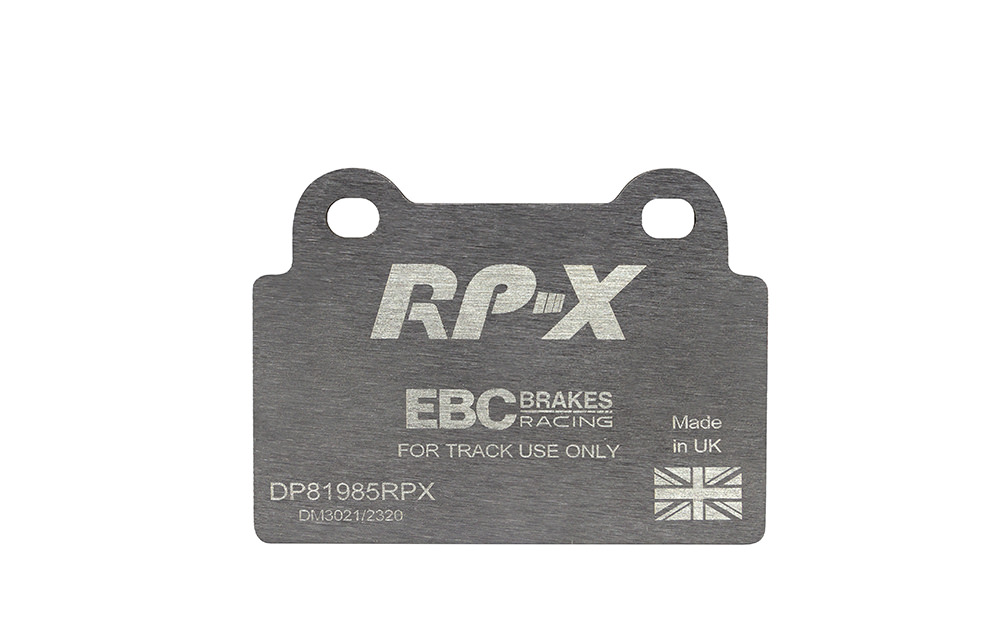 Klocki hamulcowe EBC RP-X, To wyczynowe klocki o bardzo wysokich osiągach, zaprojektowane z myślą o pojazdach sportowych, intensywnie jeżdżących po torze. RP-X posiadaj wyższy poziom tarcia 0,55 i są dedykowane do samochodów z hamulcami działającymi progresywnie, nie posiadających agresywnego wspomagania. Zastosowanie klocków RP-X zapewnia wyższą siłę hamowania i szybszą reakcję, pozwala to zachować optymalny skok pedału hamulca. Zarówno klocki RP-1 i RP-X  to klocki wyczynowe o wysokiej sprawności hamowania oraz odporności na wysokie temperatury. Różnią się współczynnikiem tarcia RP-1 0,45 Mu, RP-X 0,55 Mu  Wyboru należy dokonać na podstawie charakterystyki układu hamulcowego i osobistych preferencji.   -Wykonane z mieszanki materiałów węglowych Kevlar®. -Współczynnik tarcia 0,55. -Zakres temperatur powtarzalnego hamowania w zakresie 100 – 850°C -Maksymalna temperatura skutecznego hamowania 1000°C. -Dłuższa żywotność w warunkach wyścigowych. -Stabilne i powtarzalne hamowanie na każdym okrążeniu. -Osiągi wyścigowe w najwyższych temperaturach wyścigowych. -Rewolucyjny system mocowania podkładek z haczykiem Nucap NRS. -Nie posiadają homologacji drogowej ECE R90.   EBC Brakes produkuje największą gamę klocków hamulcowych i tarcz hamulcowych na świecie, oferuje ponad 5000 produktów do większości pojazdów. EBC Brakes posiada dwie specjalistyczne  fabryki w Wielkiej Brytanii i USA. Oferta obejmuje klocki hamulcowe do samochodów osobowych, ciężarowych, motocykli i rowerów, produkuje również specjalistyczne układy hamulcowe do farm wiatrowych, klocki hamulcowe do zastosowań wojskowych, takich jak Humvee i samochody opancerzone. Rodzaje produkowanych klocków hamulcowych obejmują klocki hamulcowe aramidowe, spiekowe, ceramiczne, o wydłużonej żywotności oraz tarcze hamulcowe EBC żeliwne, nierdzewne oraz pływające. Pasuje do: