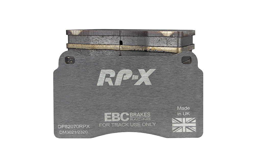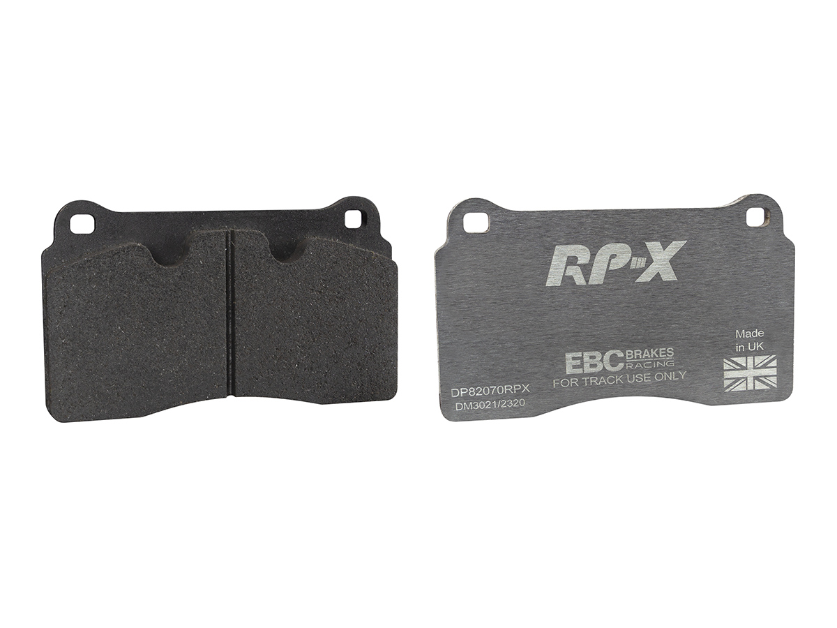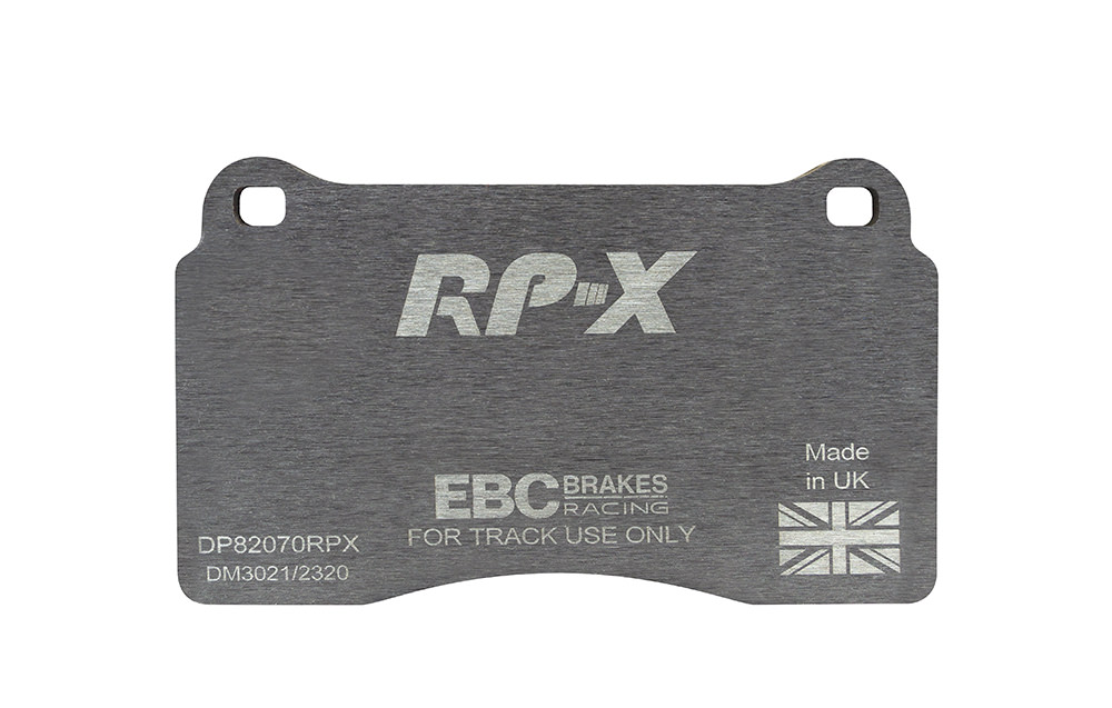 Klocki hamulcowe EBC RP-X, To wyczynowe klocki o bardzo wysokich osiągach, zaprojektowane z myślą o pojazdach sportowych, intensywnie jeżdżących po torze. RP-X posiadaj wyższy poziom tarcia 0,55 i są dedykowane do samochodów z hamulcami działającymi progresywnie, nie posiadających agresywnego wspomagania. Zastosowanie klocków RP-X zapewnia wyższą siłę hamowania i szybszą reakcję, pozwala to zachować optymalny skok pedału hamulca. Zarówno klocki RP-1 i RP-X  to klocki wyczynowe o wysokiej sprawności hamowania oraz odporności na wysokie temperatury. Różnią się współczynnikiem tarcia RP-1 0,45 Mu, RP-X 0,55 Mu  Wyboru należy dokonać na podstawie charakterystyki układu hamulcowego i osobistych preferencji.   -Wykonane z mieszanki materiałów węglowych Kevlar®. -Współczynnik tarcia 0,55. -Zakres temperatur powtarzalnego hamowania w zakresie 100 – 850°C -Maksymalna temperatura skutecznego hamowania 1000°C. -Dłuższa żywotność w warunkach wyścigowych. -Stabilne i powtarzalne hamowanie na każdym okrążeniu. -Osiągi wyścigowe w najwyższych temperaturach wyścigowych. -Rewolucyjny system mocowania podkładek z haczykiem Nucap NRS. -Nie posiadają homologacji drogowej ECE R90.   EBC Brakes produkuje największą gamę klocków hamulcowych i tarcz hamulcowych na świecie, oferuje ponad 5000 produktów do większości pojazdów. EBC Brakes posiada dwie specjalistyczne  fabryki w Wielkiej Brytanii i USA. Oferta obejmuje klocki hamulcowe do samochodów osobowych, ciężarowych, motocykli i rowerów, produkuje również specjalistyczne układy hamulcowe do farm wiatrowych, klocki hamulcowe do zastosowań wojskowych, takich jak Humvee i samochody opancerzone. Rodzaje produkowanych klocków hamulcowych obejmują klocki hamulcowe aramidowe, spiekowe, ceramiczne, o wydłużonej żywotności oraz tarcze hamulcowe EBC żeliwne, nierdzewne oraz pływające. Pasuje do: