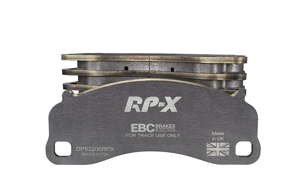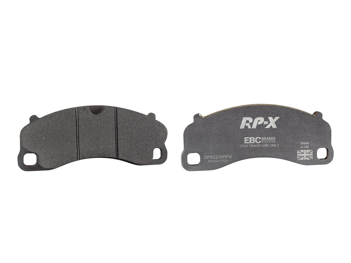 Klocki hamulcowe EBC RP-X, To wyczynowe klocki o bardzo wysokich osiągach, zaprojektowane z myślą o pojazdach sportowych, intensywnie jeżdżących po torze. RP-X posiadaj wyższy poziom tarcia 0,55 i są dedykowane do samochodów z hamulcami działającymi progresywnie, nie posiadających agresywnego wspomagania. Zastosowanie klocków RP-X zapewnia wyższą siłę hamowania i szybszą reakcję, pozwala to zachować optymalny skok pedału hamulca. Zarówno klocki RP-1 i RP-X  to klocki wyczynowe o wysokiej sprawności hamowania oraz odporności na wysokie temperatury. Różnią się współczynnikiem tarcia RP-1 0,45 Mu, RP-X 0,55 Mu  Wyboru należy dokonać na podstawie charakterystyki układu hamulcowego i osobistych preferencji.   -Wykonane z mieszanki materiałów węglowych Kevlar®. -Współczynnik tarcia 0,55. -Zakres temperatur powtarzalnego hamowania w zakresie 100 – 850°C -Maksymalna temperatura skutecznego hamowania 1000°C. -Dłuższa żywotność w warunkach wyścigowych. -Stabilne i powtarzalne hamowanie na każdym okrążeniu. -Osiągi wyścigowe w najwyższych temperaturach wyścigowych. -Rewolucyjny system mocowania podkładek z haczykiem Nucap NRS. -Nie posiadają homologacji drogowej ECE R90.   EBC Brakes produkuje największą gamę klocków hamulcowych i tarcz hamulcowych na świecie, oferuje ponad 5000 produktów do większości pojazdów. EBC Brakes posiada dwie specjalistyczne  fabryki w Wielkiej Brytanii i USA. Oferta obejmuje klocki hamulcowe do samochodów osobowych, ciężarowych, motocykli i rowerów, produkuje również specjalistyczne układy hamulcowe do farm wiatrowych, klocki hamulcowe do zastosowań wojskowych, takich jak Humvee i samochody opancerzone. Rodzaje produkowanych klocków hamulcowych obejmują klocki hamulcowe aramidowe, spiekowe, ceramiczne, o wydłużonej żywotności oraz tarcze hamulcowe EBC żeliwne, nierdzewne oraz pływające. Pasuje do:
