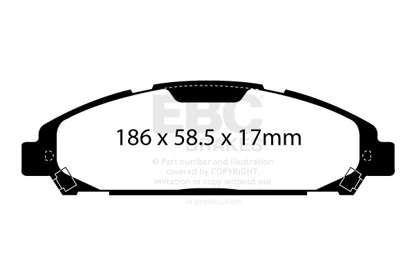 Klocki hamulcowe EBC RP-X, To wyczynowe klocki o bardzo wysokich osiągach, zaprojektowane z myślą o pojazdach sportowych, intensywnie jeżdżących po torze. RP-X posiadaj wyższy poziom tarcia 0,55 i są dedykowane do samochodów z hamulcami działającymi progresywnie, nie posiadających agresywnego wspomagania. Zastosowanie klocków RP-X zapewnia wyższą siłę hamowania i szybszą reakcję, pozwala to zachować optymalny skok pedału hamulca. Zarówno klocki RP-1 i RP-X  to klocki wyczynowe o wysokiej sprawności hamowania oraz odporności na wysokie temperatury. Różnią się współczynnikiem tarcia RP-1 0,45 Mu, RP-X 0,55 Mu  Wyboru należy dokonać na podstawie charakterystyki układu hamulcowego i osobistych preferencji.   -Wykonane z mieszanki materiałów węglowych Kevlar®. -Współczynnik tarcia 0,55. -Zakres temperatur powtarzalnego hamowania w zakresie 100 – 850°C -Maksymalna temperatura skutecznego hamowania 1000°C. -Dłuższa żywotność w warunkach wyścigowych. -Stabilne i powtarzalne hamowanie na każdym okrążeniu. -Osiągi wyścigowe w najwyższych temperaturach wyścigowych. -Rewolucyjny system mocowania podkładek z haczykiem Nucap NRS. -Nie posiadają homologacji drogowej ECE R90.   EBC Brakes produkuje największą gamę klocków hamulcowych i tarcz hamulcowych na świecie, oferuje ponad 5000 produktów do większości pojazdów. EBC Brakes posiada dwie specjalistyczne  fabryki w Wielkiej Brytanii i USA. Oferta obejmuje klocki hamulcowe do samochodów osobowych, ciężarowych, motocykli i rowerów, produkuje również specjalistyczne układy hamulcowe do farm wiatrowych, klocki hamulcowe do zastosowań wojskowych, takich jak Humvee i samochody opancerzone. Rodzaje produkowanych klocków hamulcowych obejmują klocki hamulcowe aramidowe, spiekowe, ceramiczne, o wydłużonej żywotności oraz tarcze hamulcowe EBC żeliwne, nierdzewne oraz pływające. Pasuje do: